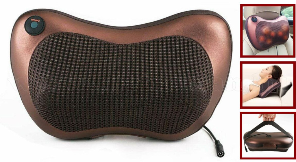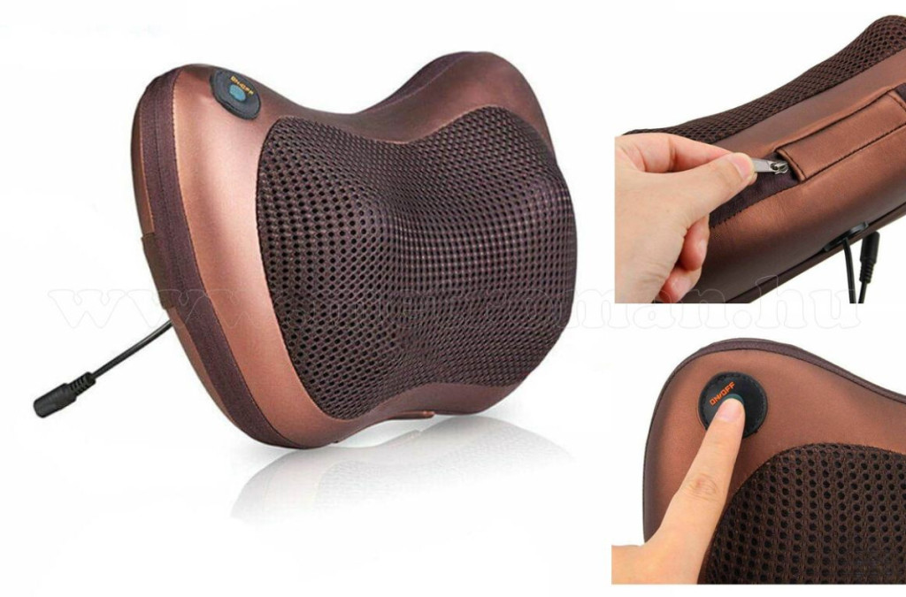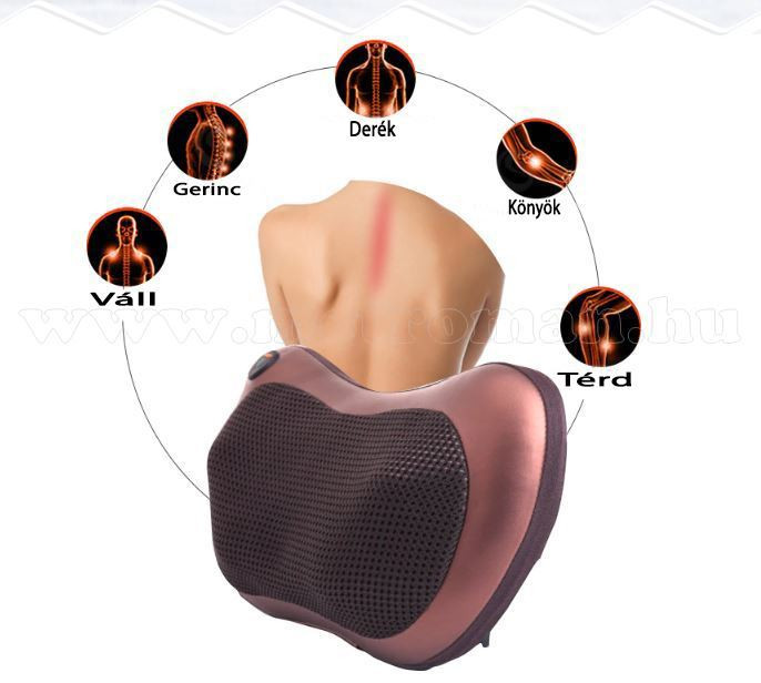 Ez a könnyű, hordozható, 8 forgó masszázsfejjel rendelkező masszázspárna enyhítheti az izmokban lévő feszültséget a nyakban, vagy a végtagokban. Használható otthon, az irodában vagy az autóban az ülésre rögzítve is, melyhez a párnán található gumis pánt nyújt segítséget. Különböző programokkal változtatható a forgásirány. A forgó fejeket puha, rugalmas, légáteresztő anyag borítja.