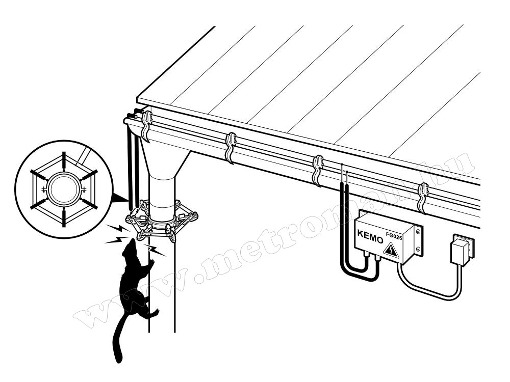 Elektromos nyestriasztó, nagyfeszültségű védőkerítés szett esőcsatornára FG025SET