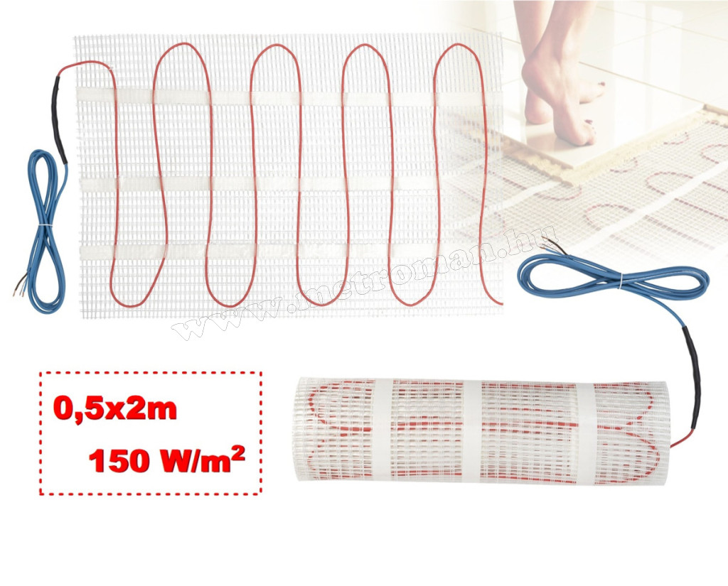 Elektromos padlófűtés, fűtőszőnyeg járólap alá 0,5x2m 150Watt HOME FHC010