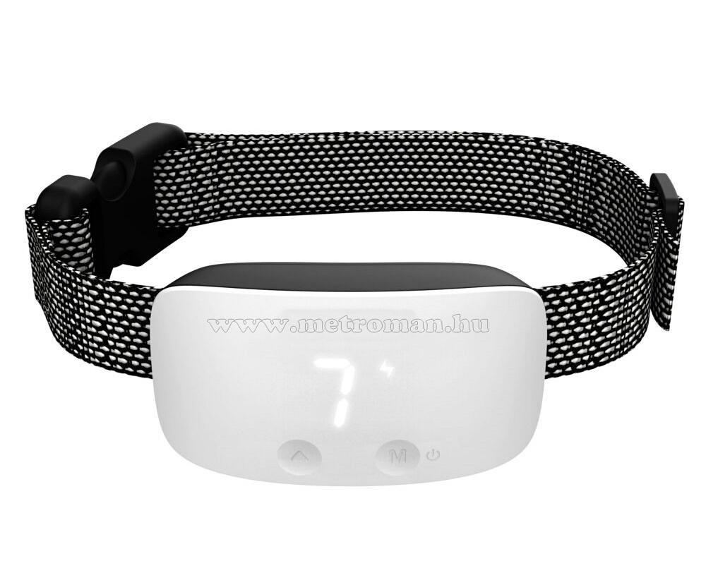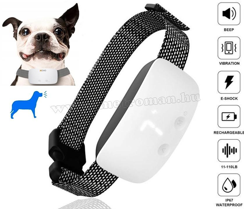 Ugatásról leszoktatást segítő nyakörv. Amint érzékeli a kutya ugatását először hangjelzéssel figyelmeztet, majd további ugatás esetén eleinte gyengébb, majd erősebb elektromos impulzusokat bocsát ki, míg a kutya az ugatást abba nem hagyja.