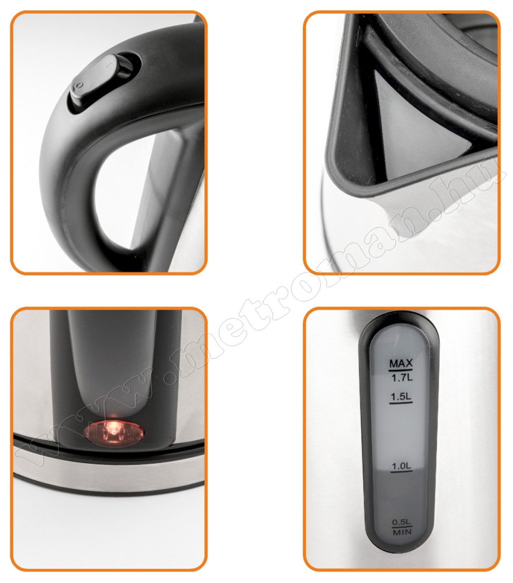 A HG VF 04 típusú 1,7 literes vízforraló segítségével gyorsan, szinte pillanatok alatt felforralhatja a vizet és szinte már készen is van a teája. Duplafalú, műanyag-rozsdamentes kivitele garantálja a sok-sok éves használatot. A kényelmes kezeléshez a készülék 360°-ban forgatható állvánnyal van ellátva, a víz kiöntése cseppenésmentesen megoldható. Előnye továbbá a könnyű tisztítás, a víz gyors felforralását egy rejtett fűtőszál biztosítja.