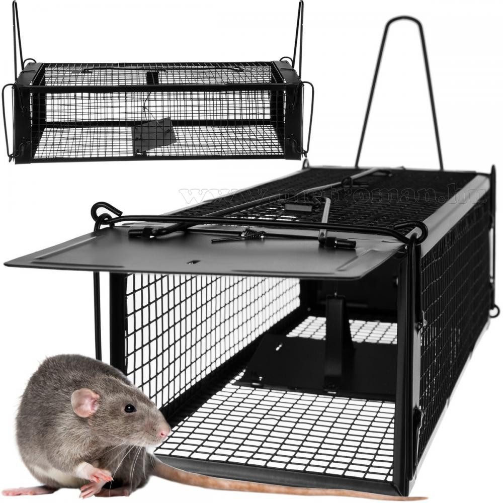 Élvefogó kétajtós ketrec csapda egerek, patkányok és kisebb rágcsálók elfogásához, mellyel humánus módon élve foghatjuk meg a kellemetlenkedő patkányokat. Masszív csapda, sűrű dróthálóval szerelve, a szökés megelőzése érdekében. A kétoldalt található fém ajtók, amikor az állat a ketrec belsejébe ér, gyorsan és automatikusan lecsukódnak.