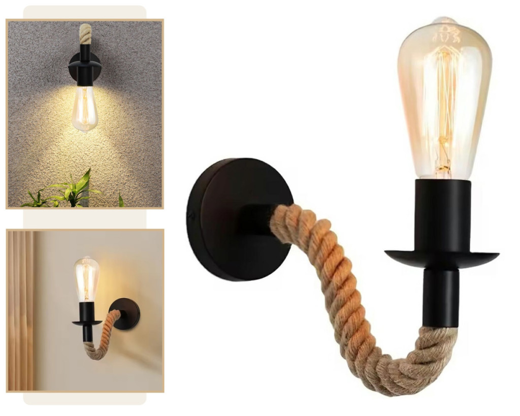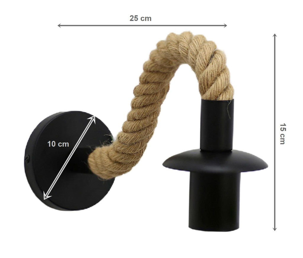 Stílusos díszítőeleme a lakásnak ez a kötél formájú fali lámpa, melynek karját valódi jutakötéllel burkolták. A fém alkatrészek minőségi porszórt acélból készültek. 1 db normál E27-es izzófoglalattal rendelkezik. A kötél lámpa, falikar tökéletesen mutat minden loft stílusú szobában vagy történelmi stílusú enteriőrben.