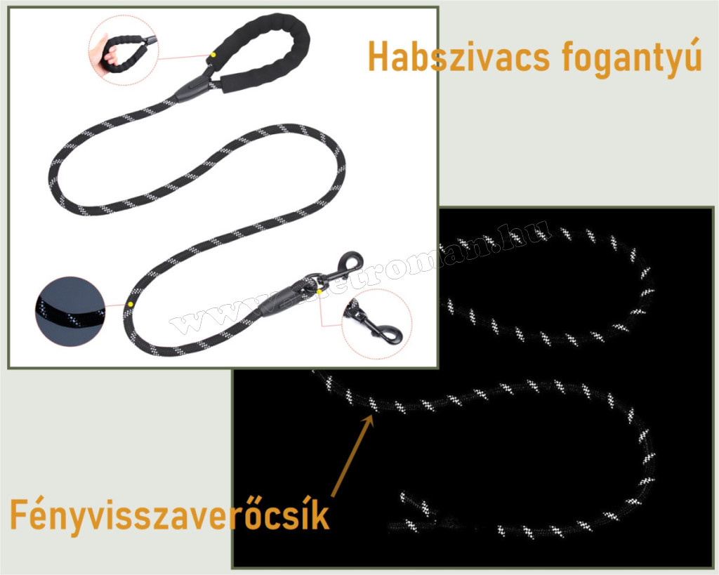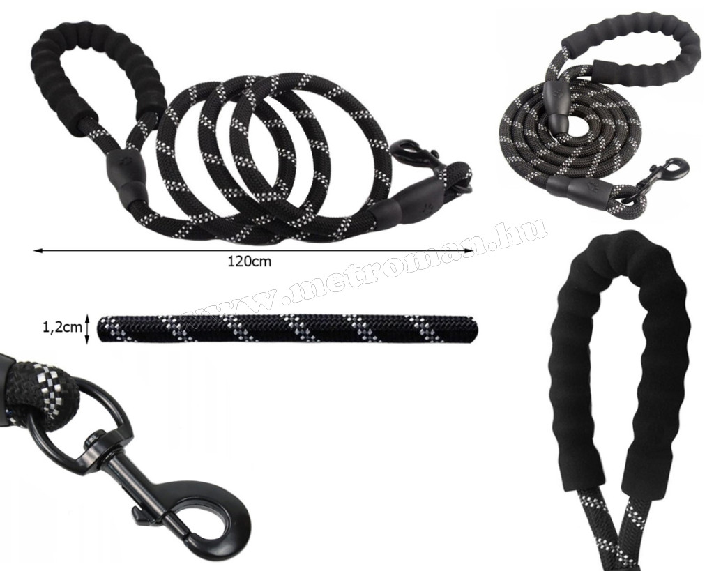 M19360F Fényvisszaverő kutyapóráz  120 cm fekete