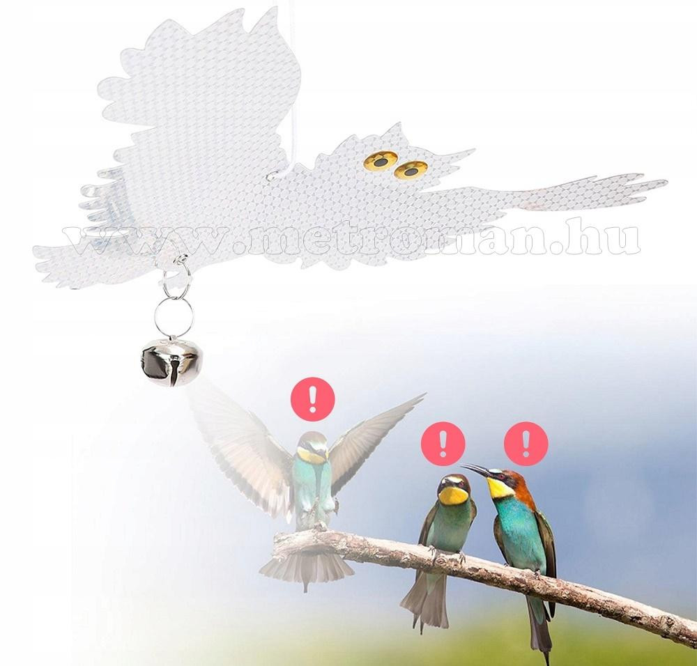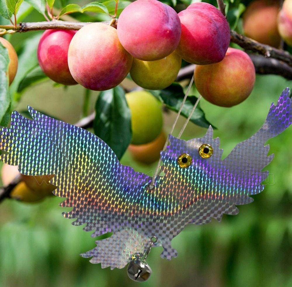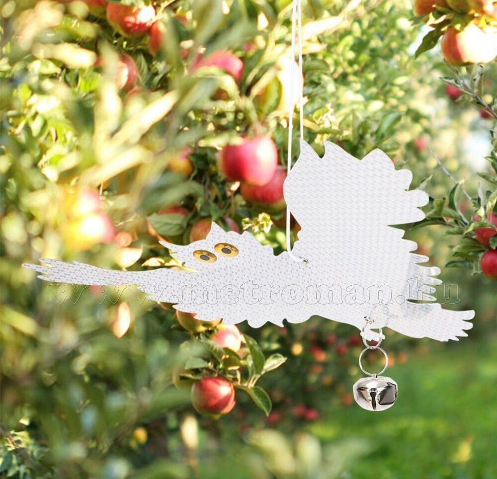 Felakasztható, fényvisszaverős bagoly alakú vizuális madárriasztó, seregélyek, rigók, varjak, galambok elriasztására. A legkisebb szellő hatására is elmozdul és a madarak éber szemére hatva, villódzó fényeivel hatékonyan riasztja és tartja távol őket gyümölcsösöktől, erkélyektől stb. A riasztó hatás fokozása érdekében  2 db csengővel van felszerelve. Ajánlott önálló használatra vagy ultrahangos kisállatriasztók hatásfokának növelésére is.