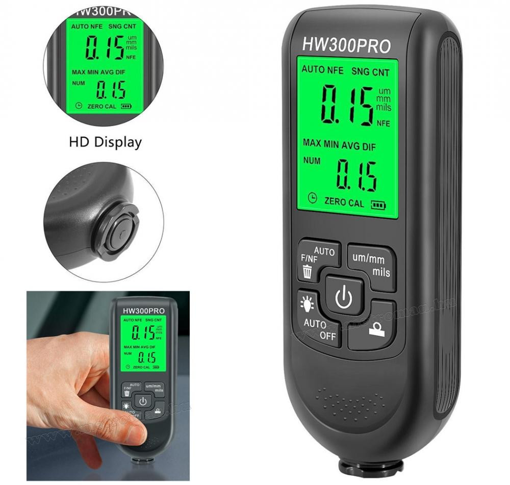 Festék rétegvastagság mérő műszer, mely kitűnően használható festékréteg vastagságának meghatározásához acél, alumínium és réz lemezeken is. Praktikus választás használható autó vásárlásakor az autó festésének ellenőrzésére is.