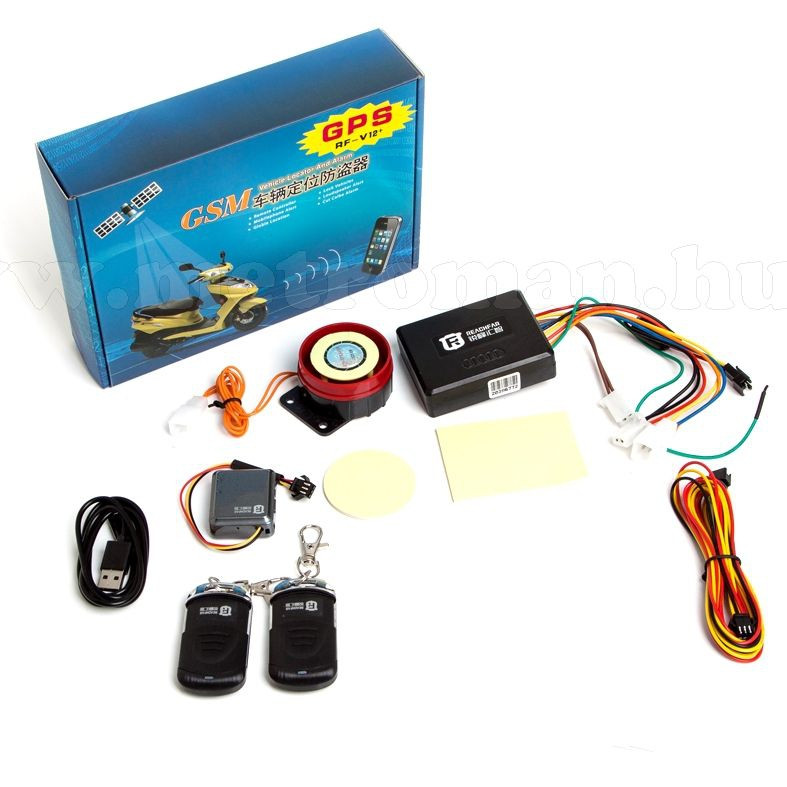 Motorkerékpár riasztó szett, mely megfelel egy átlagos motorriasztónak, de kiegészítve egy GPS nyomkövető egységgel. SMS-ben bármikor lekérdezhetjük a megfigyelt motor, autó, hajó vagy egyéb eszköz, jármű pontos helyzetét. A riasztó rendelkezik egy beépített ütésérzékelővel, riasztás esetén SMS-ben a megadott telefonszámra értesítést küld.