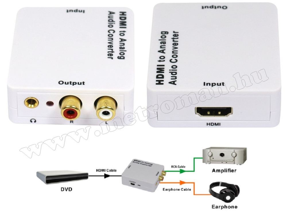 HDMI  kimenettel rendelkező TV készülékek összekötése RCA bemenetű Hifi, Erősítő, Aktív hangfalhoz, valamint fejhallgató csatlakozóval is rendelkezik !