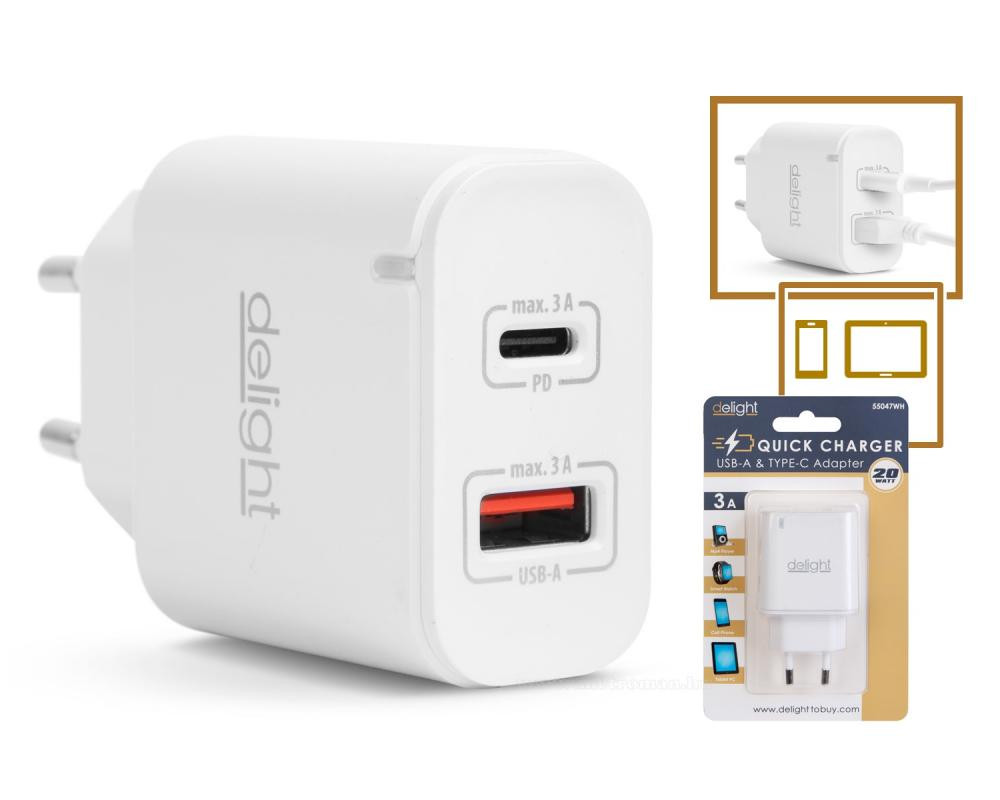Ez az USB-A és USB-C típusú aljzattal rendelkező hálózati töltő adapter, gyors és hatékony töltést tesz lehetővé. Kiválóan alkalmas különböző eszközök, telefon, tablet USB-ről történő töltésére, használatára. Kizárólag beltéri használatra!