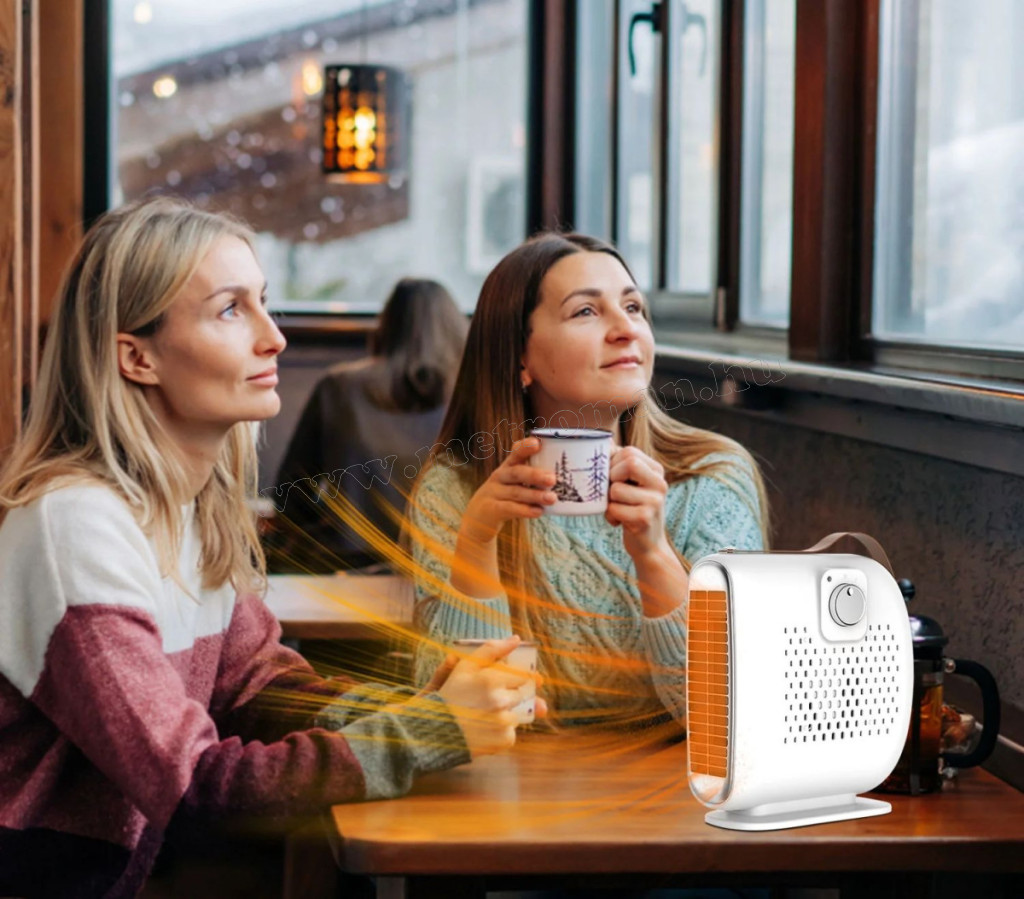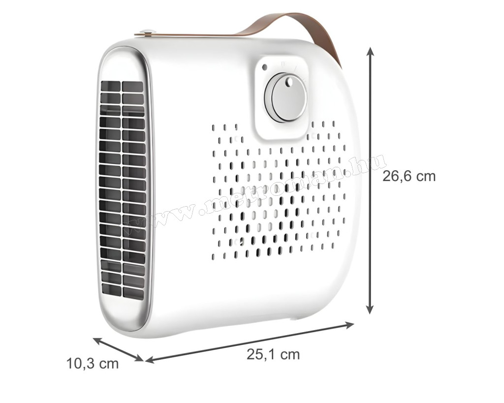 Ez a hordozható, egyszerűen kezelhető ventilátoros fűtőtest 2 fokozatban állítható légáramlással pillanatok alatt felmelegíti környezetét. Hordozófogantyúval ellátott könnyű, de stabil konstrukciójának köszönhetően bárhol elhelyezhető, ahol rendelkezésre áll szabványos hálózati aljzat. Tökéketes kiegészítő hőforrás kisebb helyiségekbe, gyerekszobába amikor az elsődleges fűtésrendszer nem képes a kívánt hőmérsékletre fűteni a szobát.
