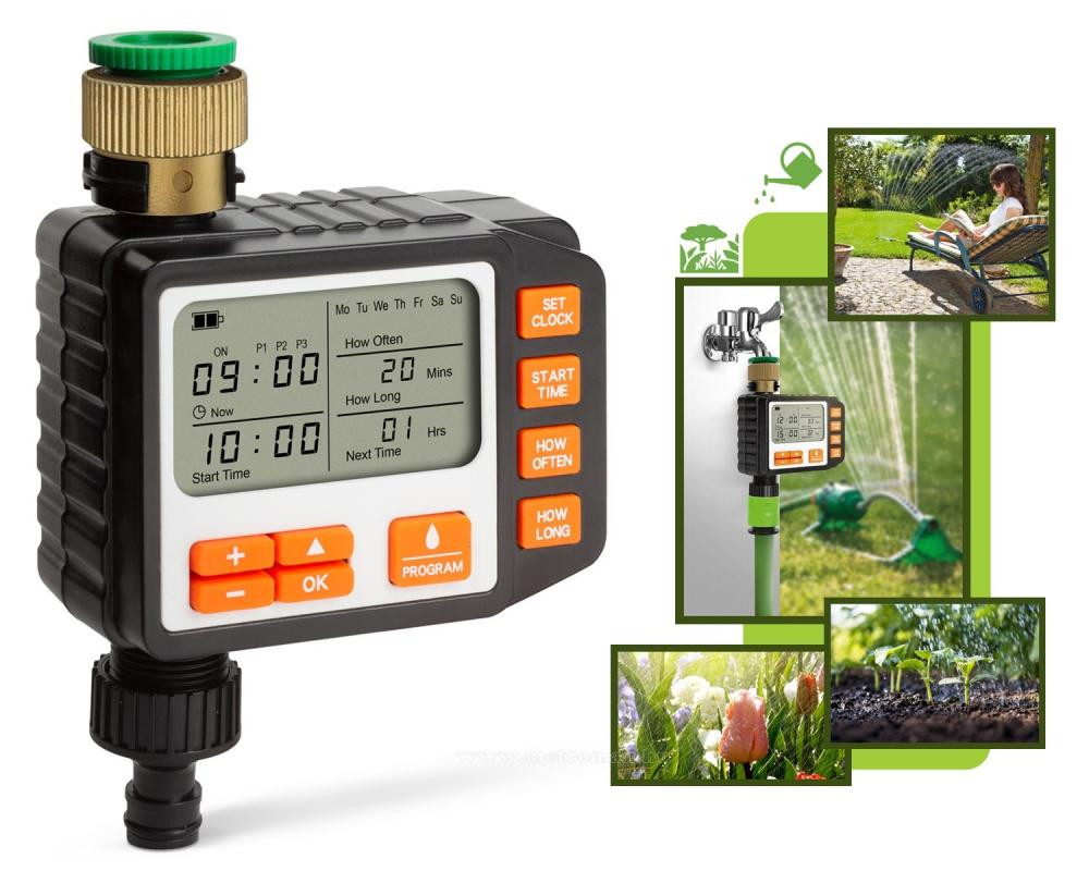 Automatizálja kertjének öntözését automatikus öntözésvezérlővel! Egyszerűen telepíthető, nem szükséges csöveket fektetni a földbe, bármilyen gyorscsatlakozós locsolótömlővel és külső menetes kerti csappal kompatibilis. Gyepöntözéshez, veteményesek esőztetéséhez vagy csepegtető öntözéséhez kiválóan alkalmas.