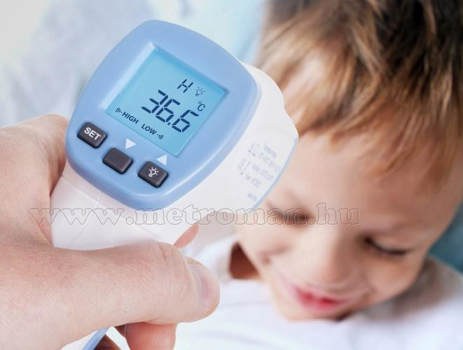 Elektronikus, érintés nélküli infravörös hőmérő, lázmérő, az egész család számára. A mérés kevesebb, mint 1 másodperc alatt történik, ami főleg gyermeknek számára mindenképpen megkönnyíti a hőmérséklet ellenőrzését.