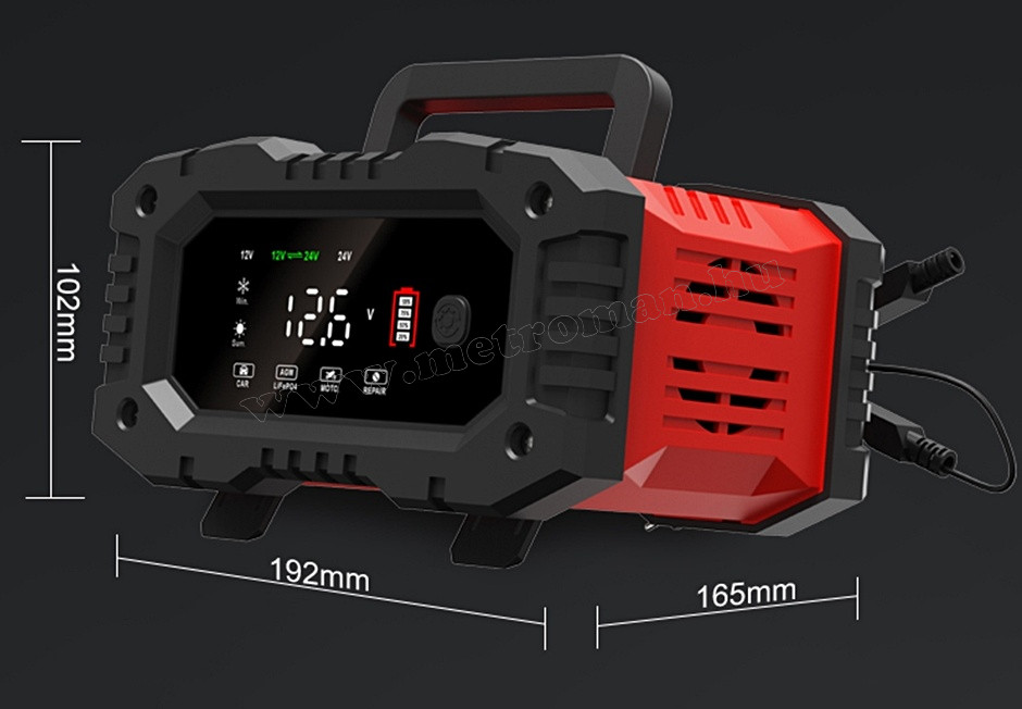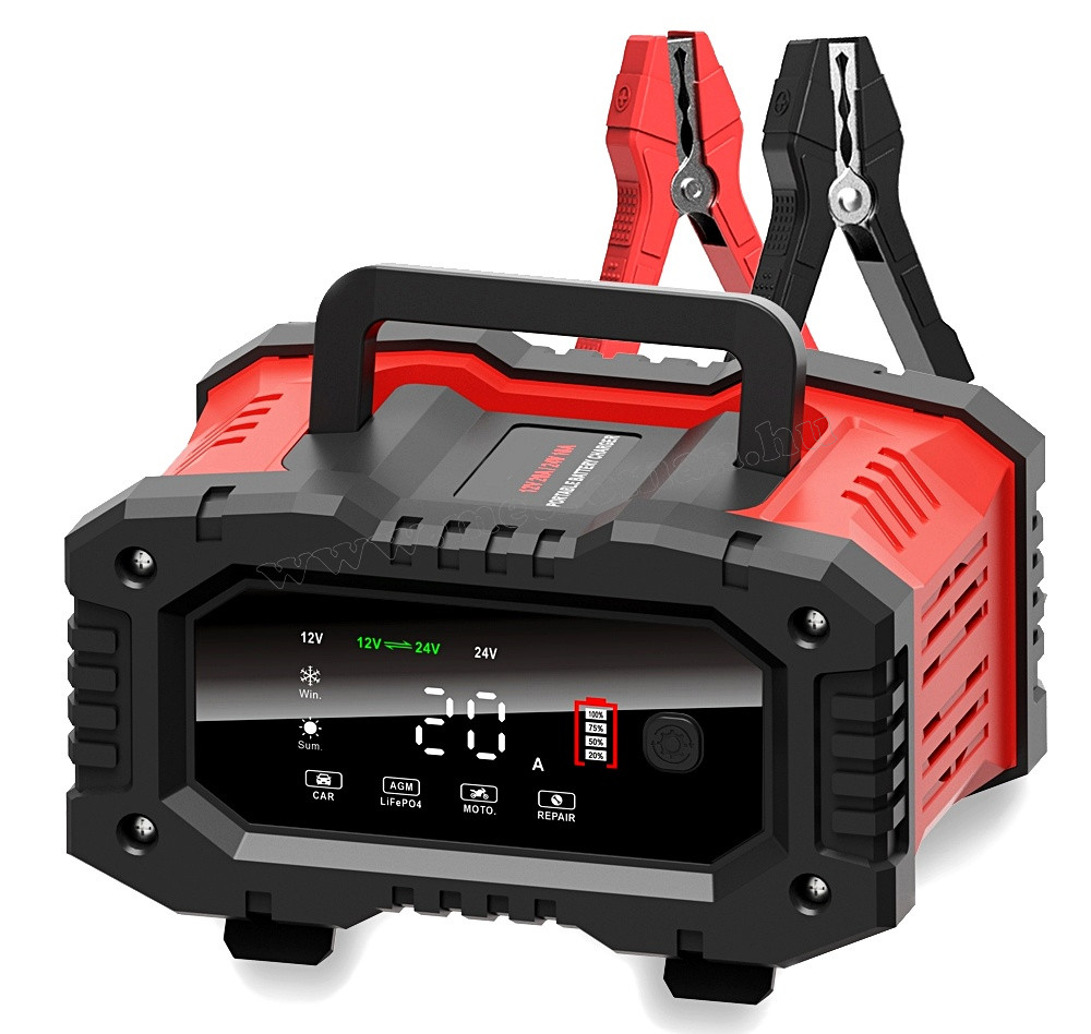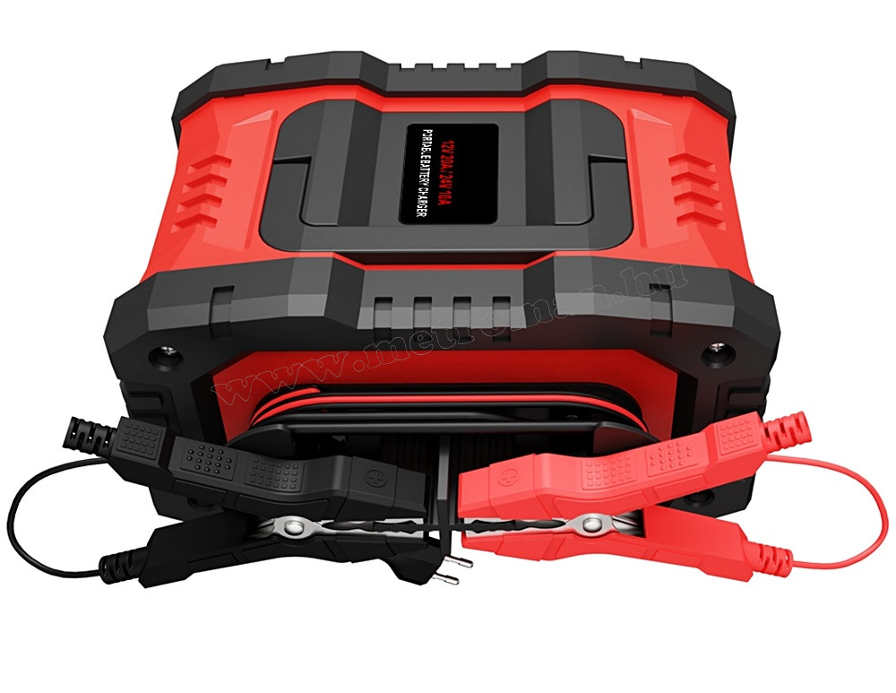 Intelligens akkumulátortöltő autóhoz, teherautóhoz, kamionhoz munkagépekhez, motorkerékpárokhoz Savas Gél és Lítium akkumulátorok töltésére