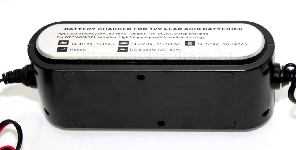 Teljesen automata , mikroprocesszor vezérelt intelligens akkumulátor töltő és csepptöltő . Max. 8 Amper töltőáram, mely az akku feltöltésekor lecsökkent, majd lekapcsol, ezért a töltő folyamatosan az akkumulátoron tartható.