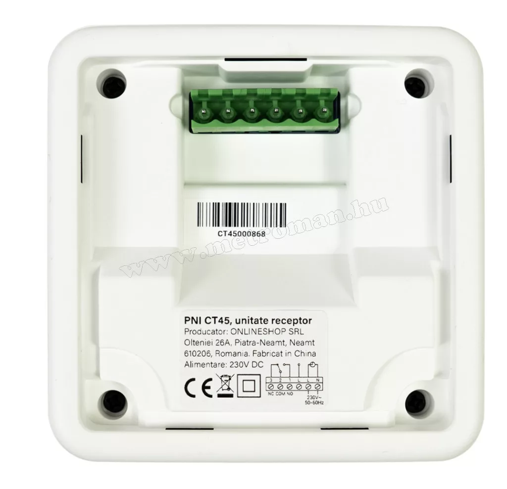 A PNI CT45 két egységből áll: a termosztátból és a vevőegységből. A vevőegység a kazán mellé kerül felszerelésre, a termosztát pedig falra vagy vízszintes felületre (asztalra, íróasztalra, éjjeliszekrényre) szerelhető. Az egységek közötti maximális kommunikációs távolság 30 m.