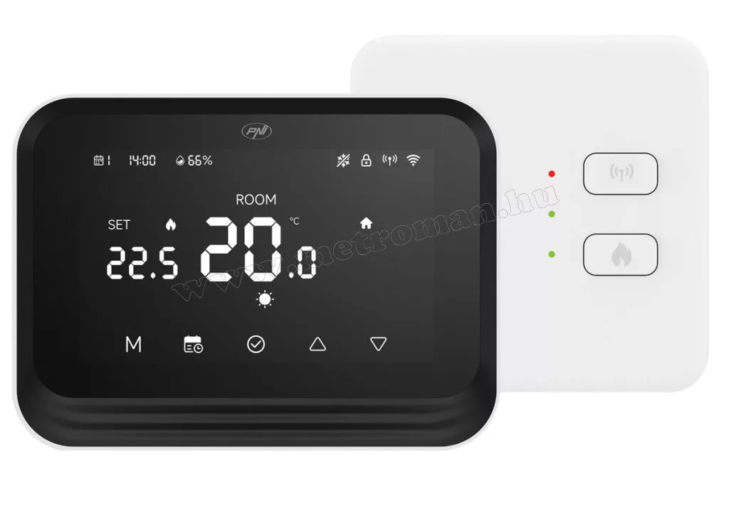 Könnyen hordozható, vezeték nélküli okostermosztát, Android iOS telefonról vezérelhető wifi termosztát. Használatával fűtését  okostelefonról bármikor ki/be kapcsolhatja, megváltoztathatja a fűtési hőmérsékletet, időzítéseket és egyéb beállításokat, így sosem kell hideg lakásba hazaérkeznie, ráadásul a fűtési költségeket is csökkentheti. Különösen ajánlott hétvégi házakhoz, nyaralókhoz, ahol a használat nem tenné lehetővé az állandó előre programozott fűtési periódusokat.