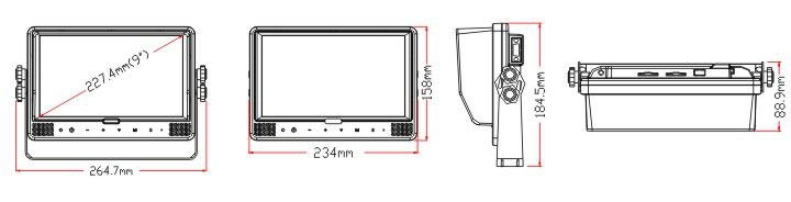 Ipari kivitelű 9"-os QUAD LCD monitor, beépített SD kártyás DVR video felvevővel, Sharp Vision MO-900141D