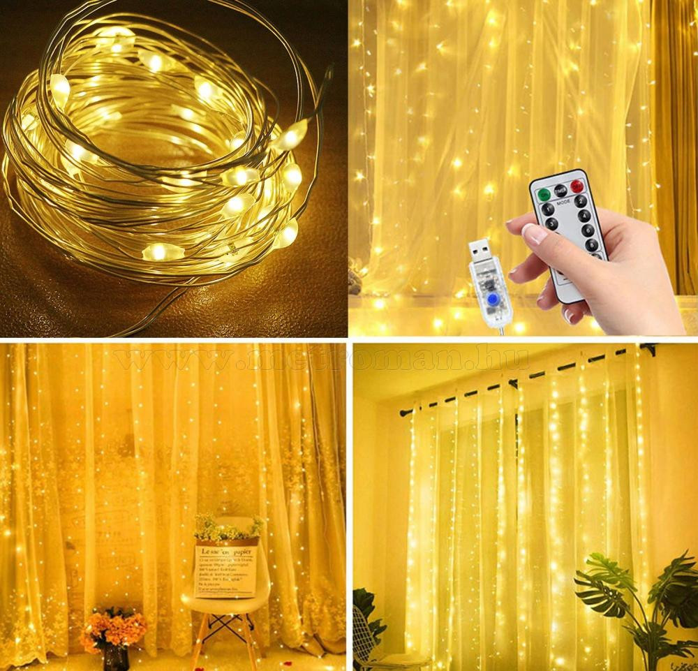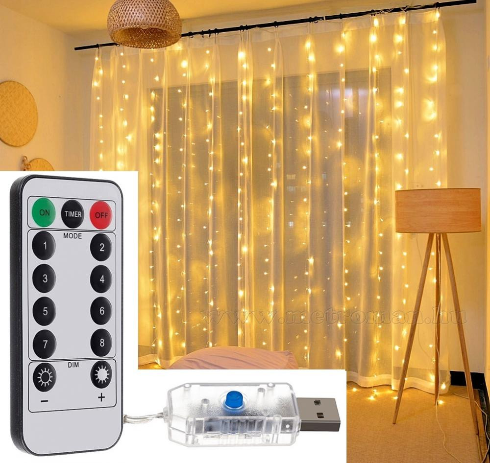 Karácsonyi LED fényfüggöny USB tápcsatlakozású 300 LED 3x3 méter MM7216USB Meleg Fehér