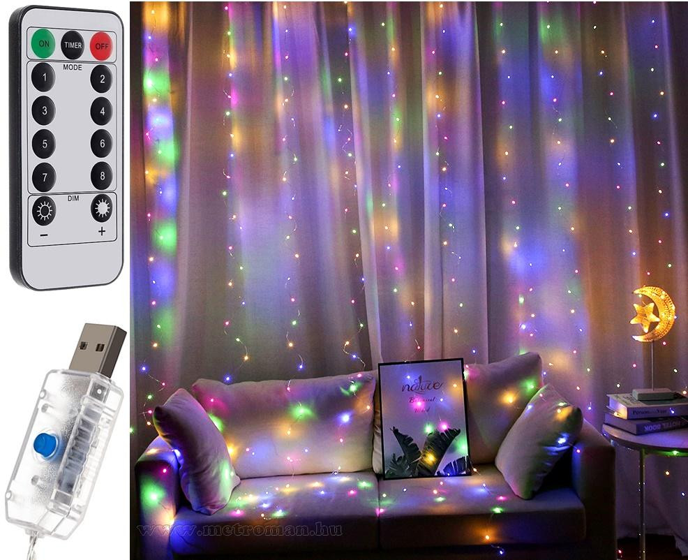 Karácsonyi LED fényfüggöny USB tápcsatlakozású 300 LED 3x3 méter MM7218USB Színes