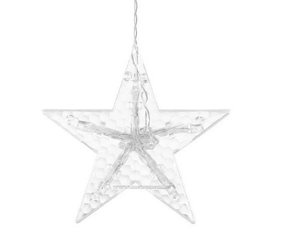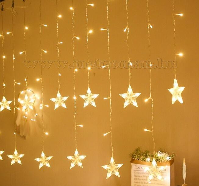 Dekoratív, 12 db csillaggal szerelt LED fényfüzér. A csillagokat összekötő fény függöny rész 3-5 db meleg fehér LED-et tartalmaz.