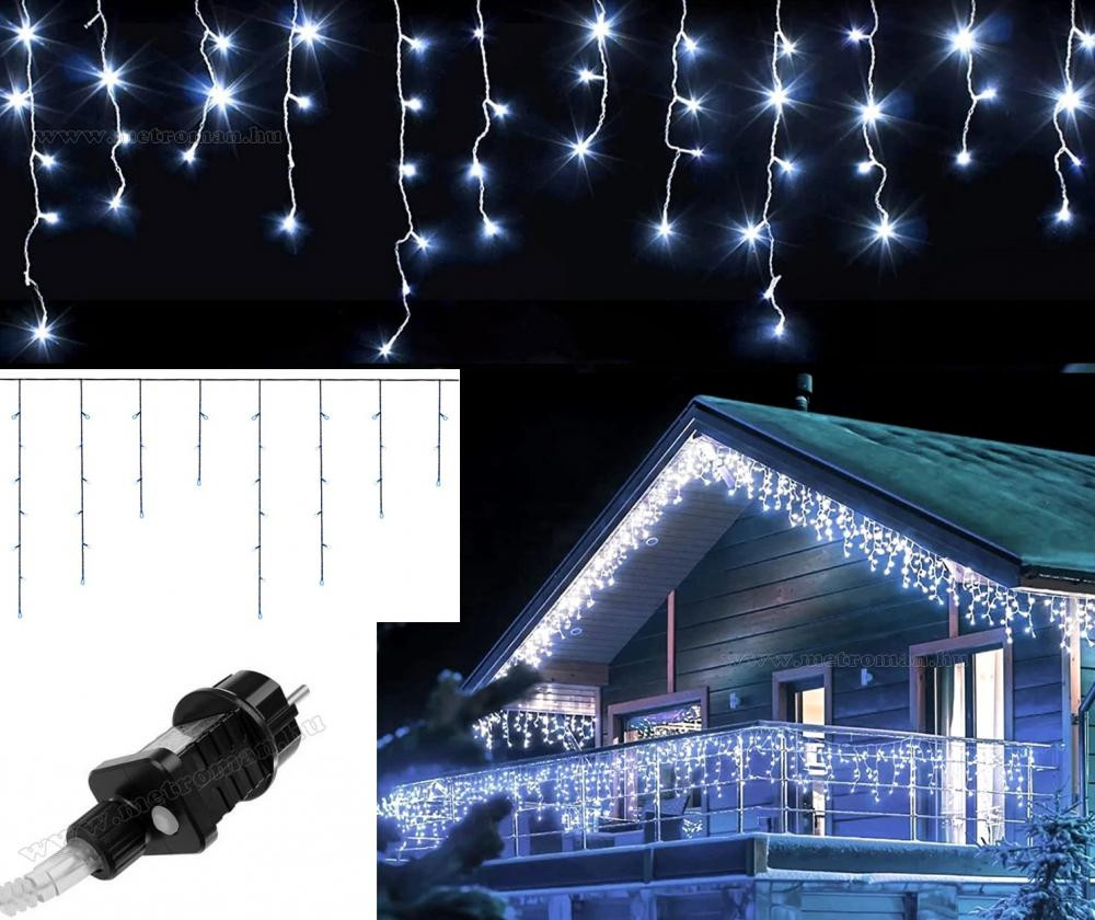 Karácsonyi hideg fehér LED kültéri jégcsap fényfüzér 300 LED 10.8 méteres