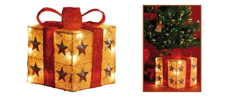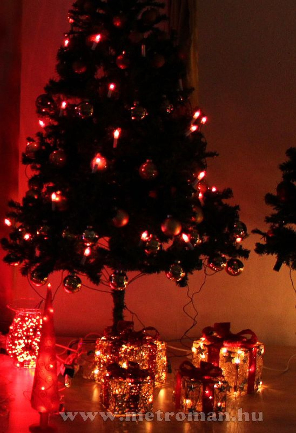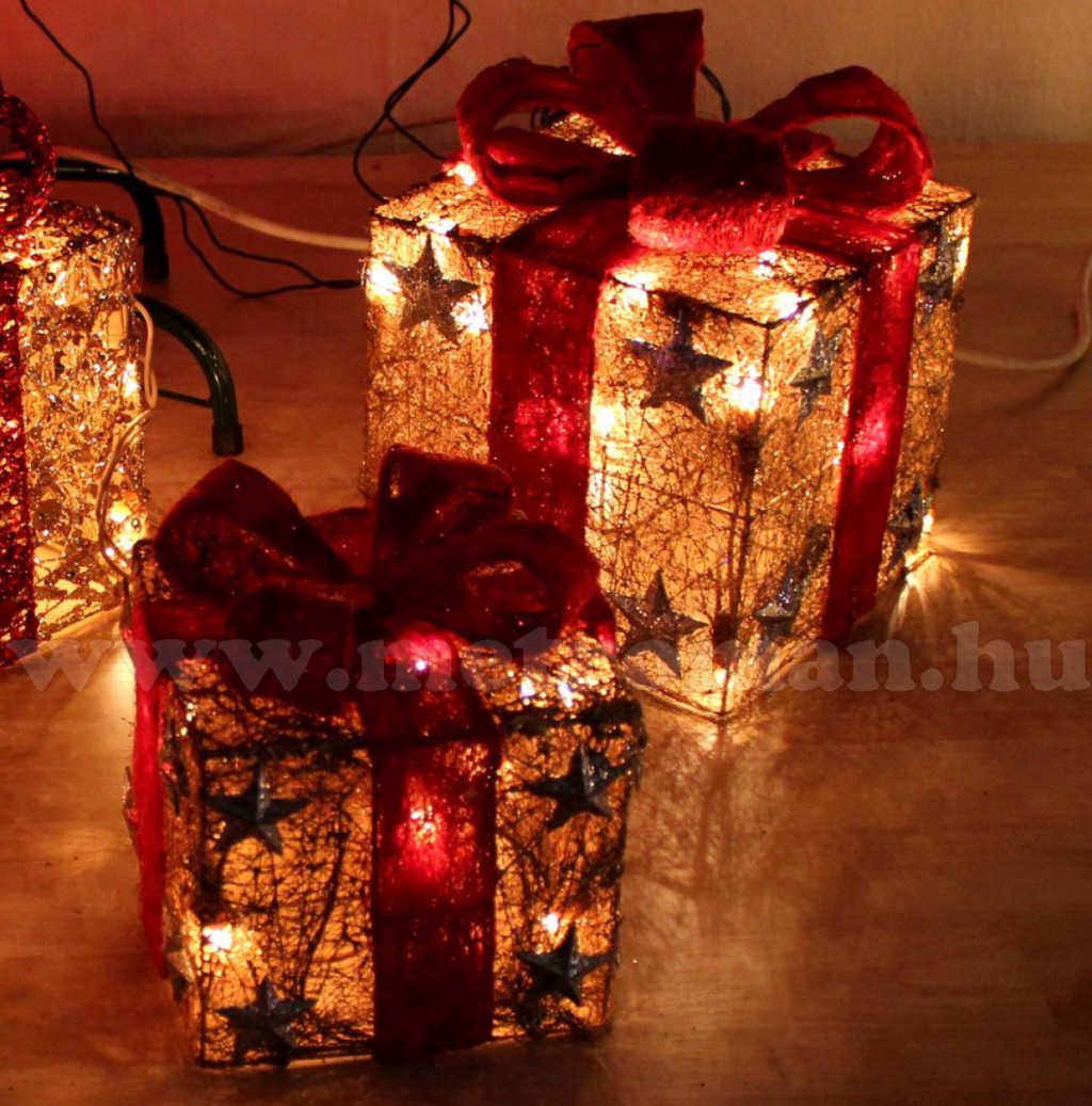 Karácsonyi világító ajándék doboz, piros-arany, KBX 15/RD