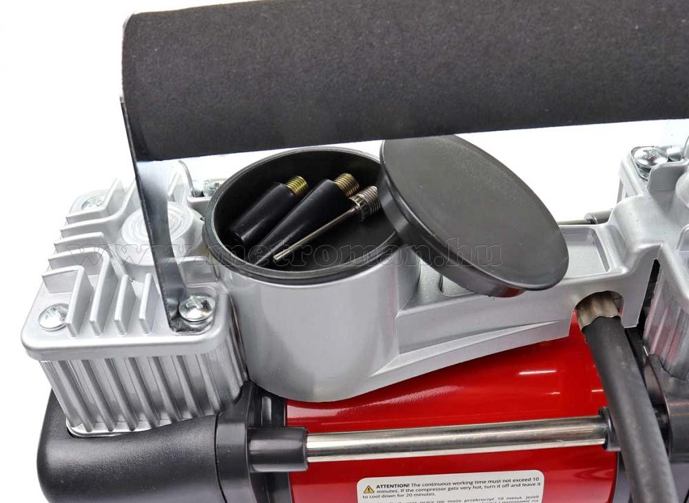 Fontos információ: A kompresszor áramfelvétele akár 30 Amper, ezért szivargyújtó csatlakozóról használni csak akkor szabad, ha az legalább 30 Amper terhelhetőségű! Kisebb teljesítményű csatlakozóról használni tilos! Ajánlott a tartozék akkucsipesszel közvetlenűl az akkumulátorra csatlakoztatni.