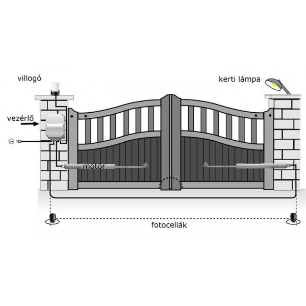Komplett lapunyitó szett családi házakhoz, kétszárnyú kapukhoz-