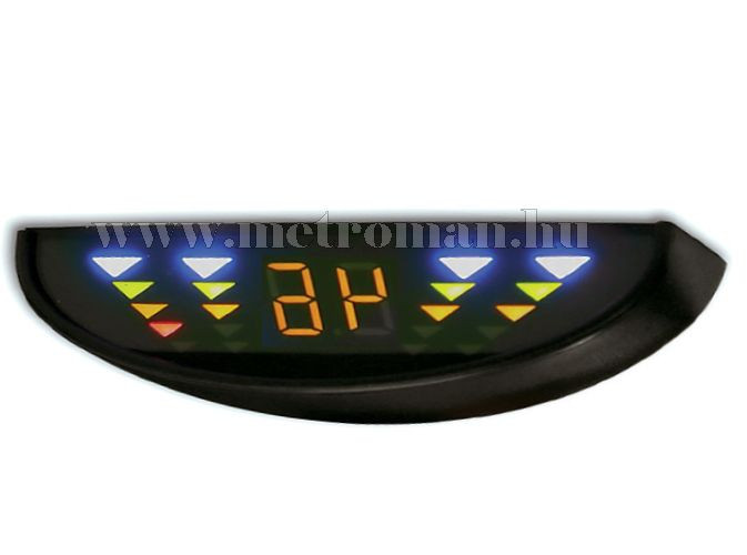 Ez a kijelző a vele azonos típusú tolatóradarok bármelyikéhez csatlakoztatható. Elhelyezhető a tetőkárpiton hátul vagy a mellékelt 5m hosszúságú kábel segítségével akár a visszapillantó tükör mellett is. Az autó útjába került akadály távolságát számokkal, irányát a 4 szenzorhoz rendelt 2db 3 színű fazon LED - del jelzi.