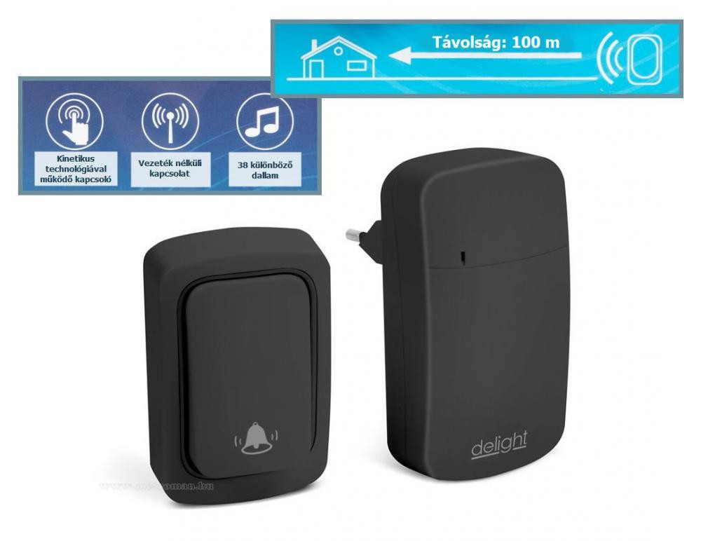 Elem nélküli, vezetéknélküli  csengő. A KINETIC technológiának köszönhetően nincs szükség elemre a kapcsoló működtetéséhez, a dinamó elvén működik.