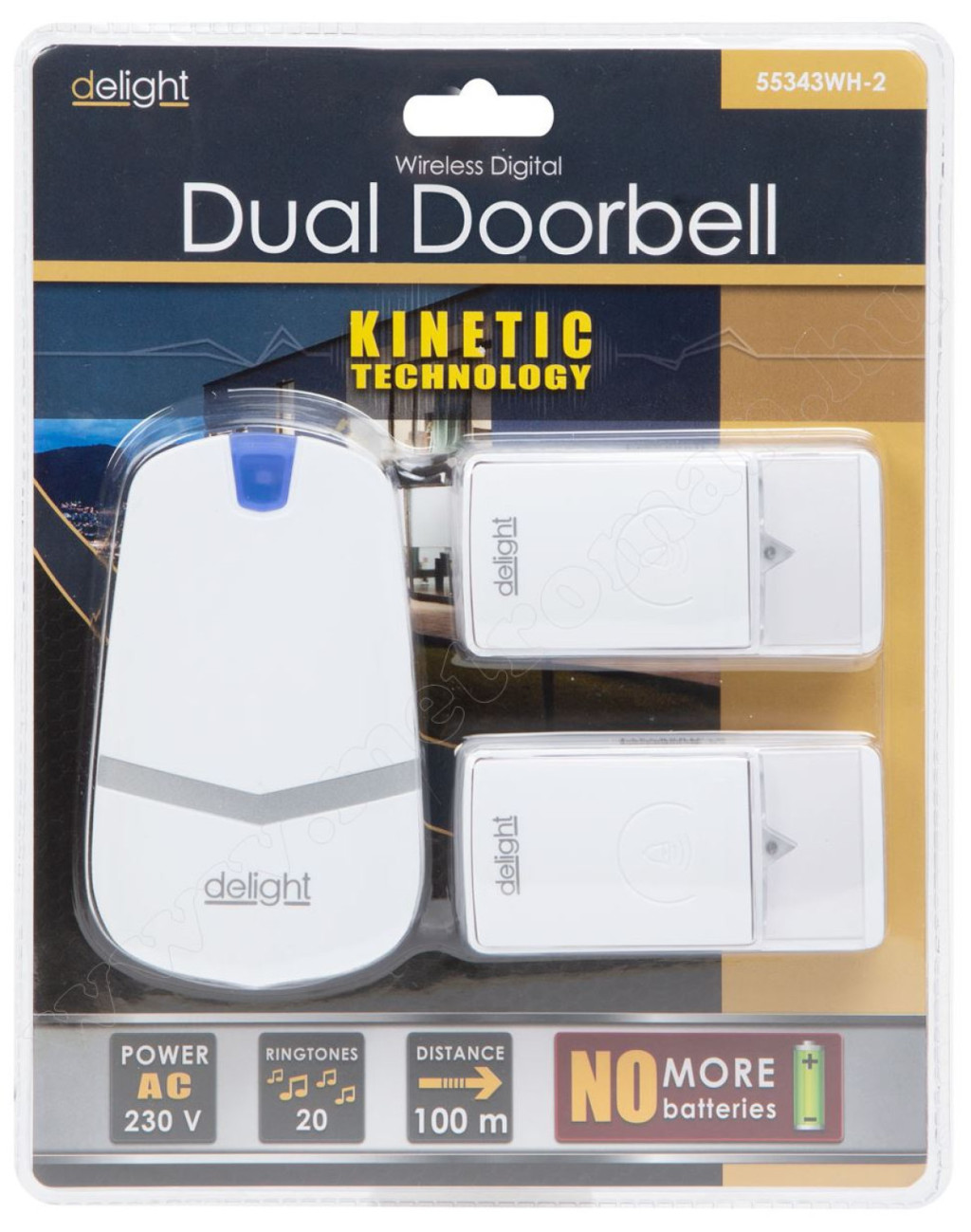 Kinetic elem nélküli, vezeték nélküli csengő két kültéri egységgel Delight 55343WH-2