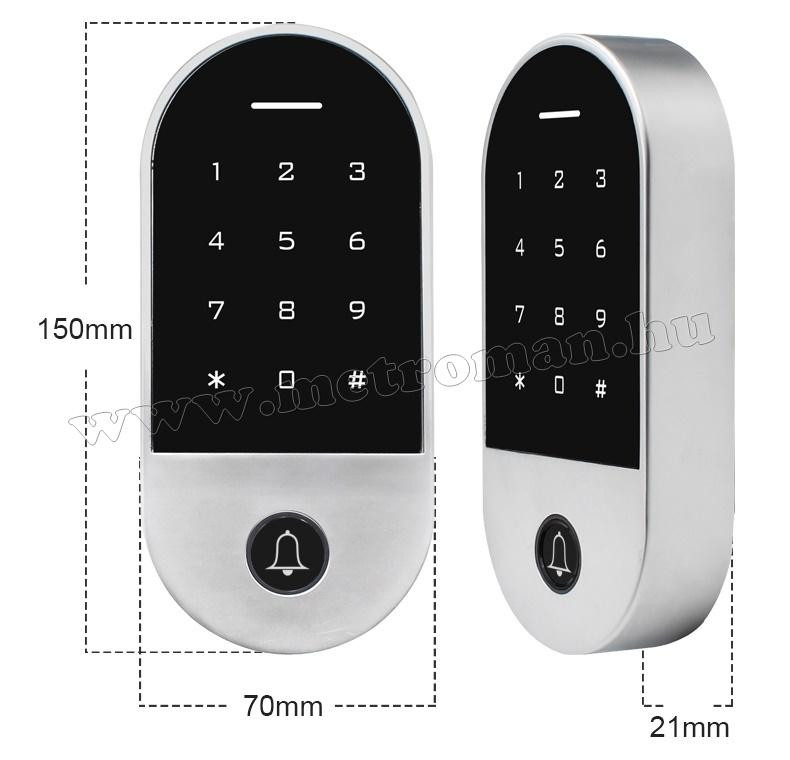 Esztétikus, fényes fekete előlappal szerelt érintőgombos kódos és/vagy kártyás valamint Bluetooth mobiltelefonos Tuya Smart APP-al is nyitható beléptető elektromos zárak vezérléséhez. Az érintéskor a billentyűzet háttér világítása automatikusan felkapcsol, így a sötétben is jól látható.