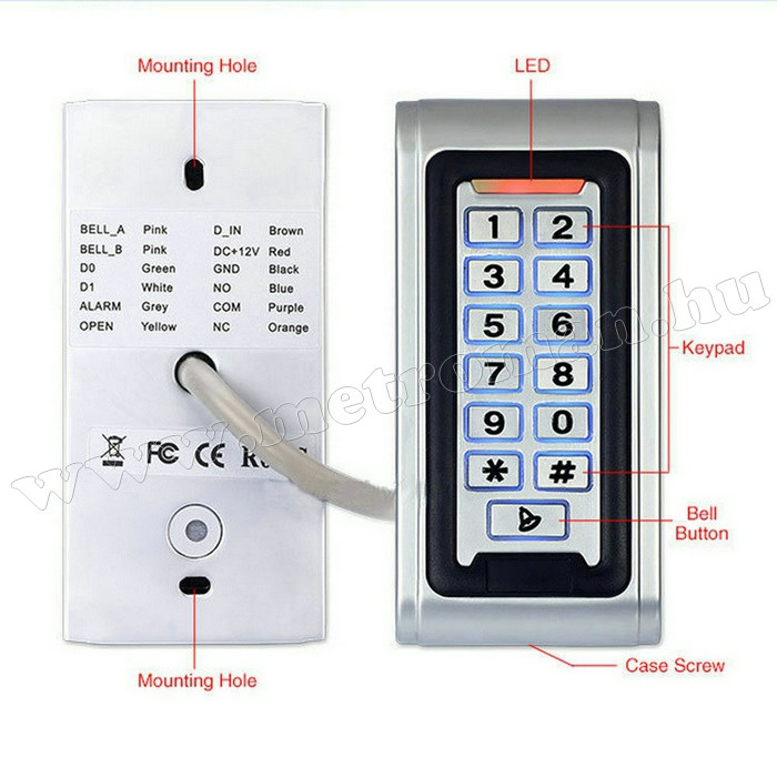Kültérre is szerelhető teljesen vízálló beléptető rendszer, mely könnyedén programozható a mellékelt használati útmutató alapján.