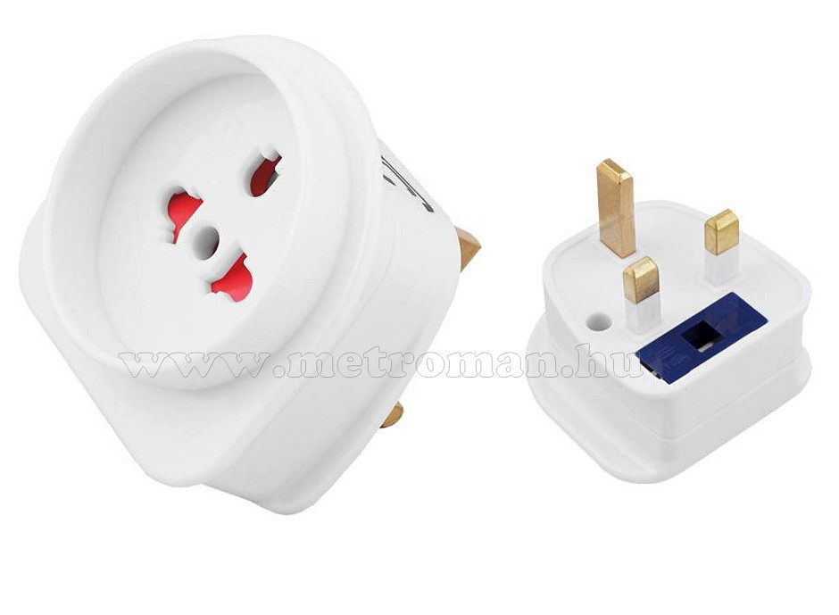 Angol szabványú konnektor átalakító utazó adapter: Használható Gibraltár, Nagy Britannia, Hong Kong, Indonézia, Kenya, Malajzia, Málta, Szingapúr, Ciprus stb. országokban.