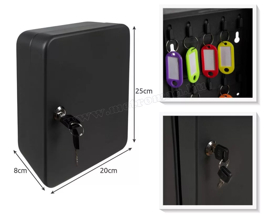 • KULCSOS ZÁR  - A doboz zárható, ami nagyszerű módja a kulcsok biztonságának. A dobozhoz két kulcs tartozik.