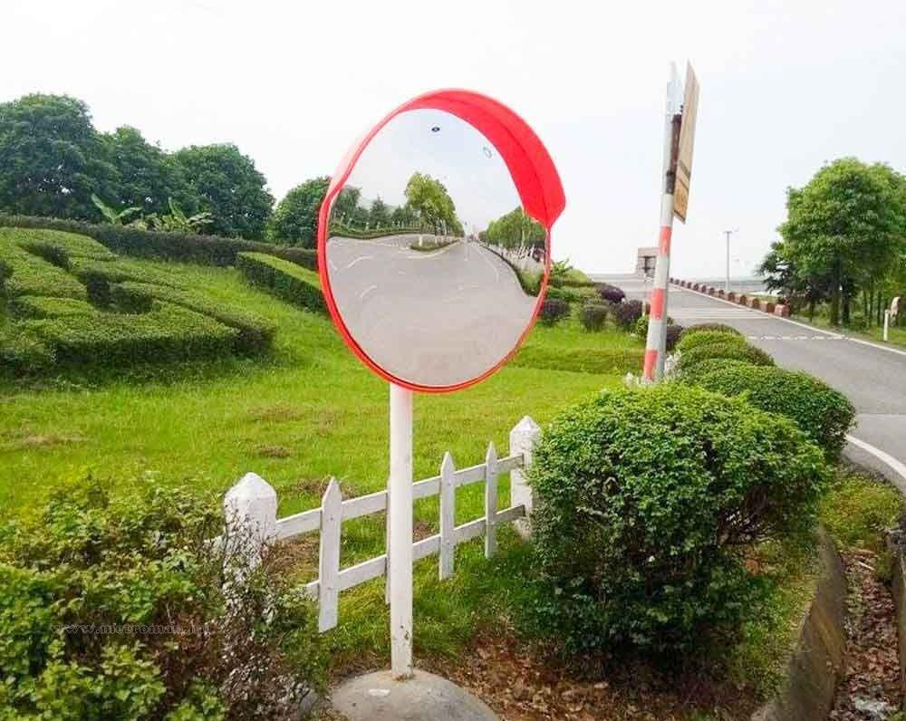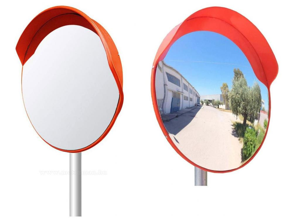 Kültéri közlekedési tükör, mely biztonsági és munkavédelmi eszközként alkalmazható. Használható útkereszteződésekben, keskeny utakon, éles kanyarokban, korlátozott látási viszonyokkal rendelkező útszakaszokon és bármilyen egyéb kültéri helyen. A tetején beépített árnyékoló található. Átmérő: 77 cm
