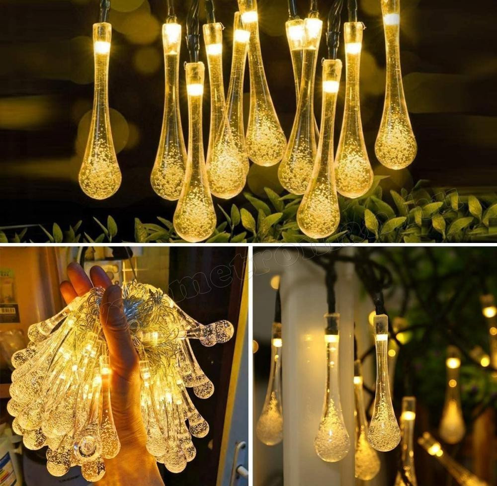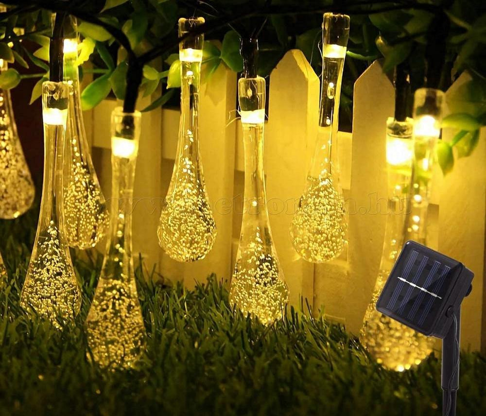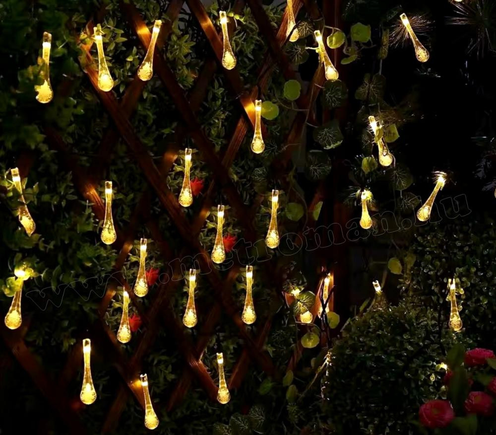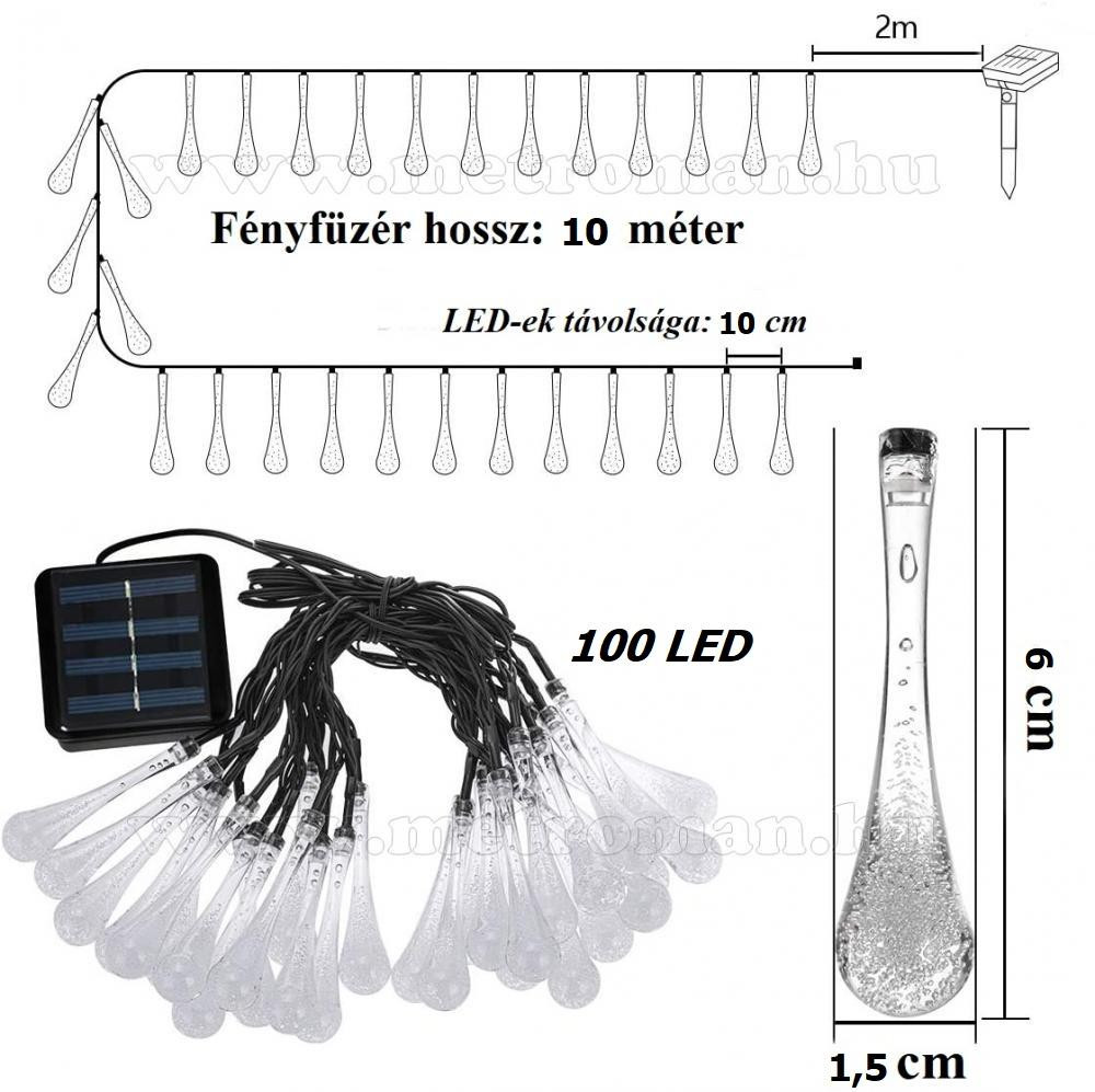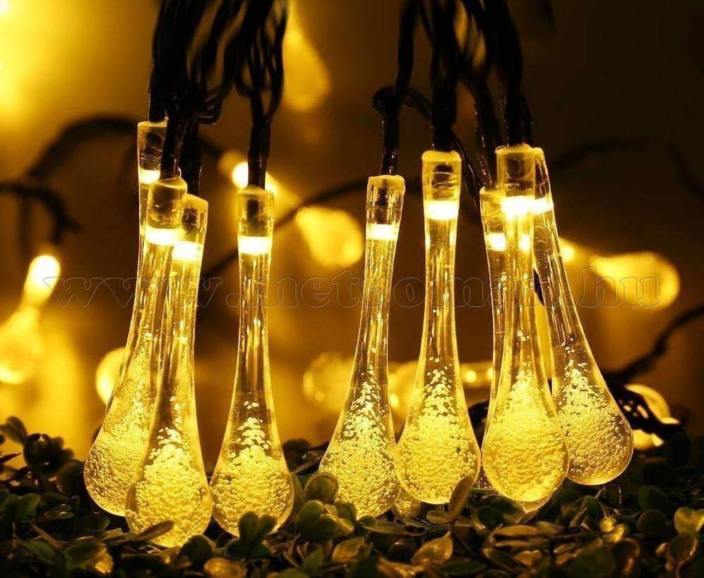 Kültéri napelemes LED fényfüzér, kerti fényfüzér és hangulat világítás, MLED100EMF Melegfehér Esőcsepp
