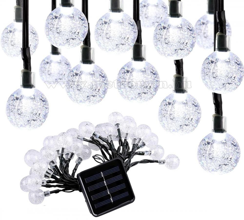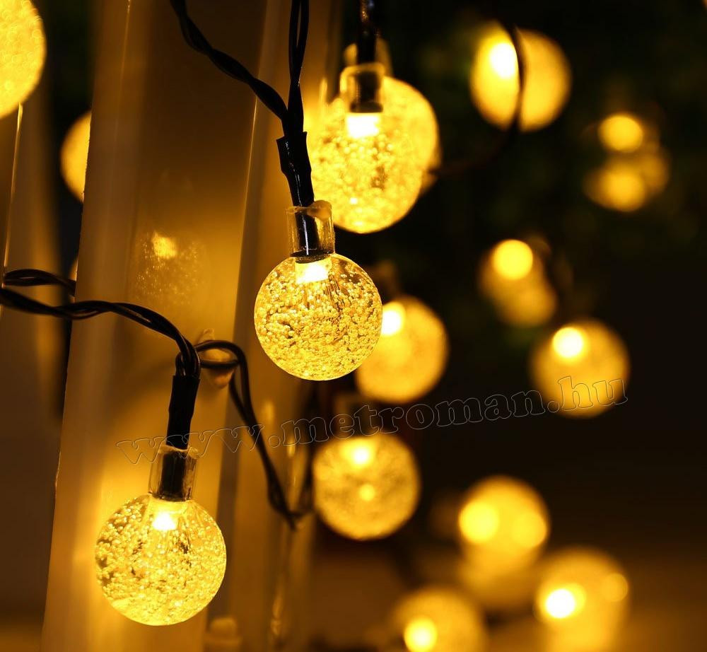 Igényes és dekoratív napelemes fényfüzér 30 db meleg fehér gömbbel. Nem igényel külső áramforrást, így gyorsan és egyszerűen telepíthető. Nappal a napelem tölti az akkumulátort, majd sötétedéskor a LED fényfüzér automatikusan bekapcsol. Kitűnő dekoráció lehet kertben, erkélyen, medencék hangulat világításaként vagy akár kültéri karácsonyi fényfüzérként is.