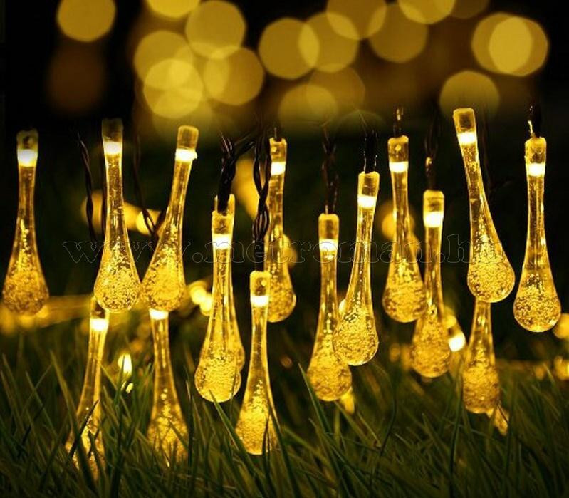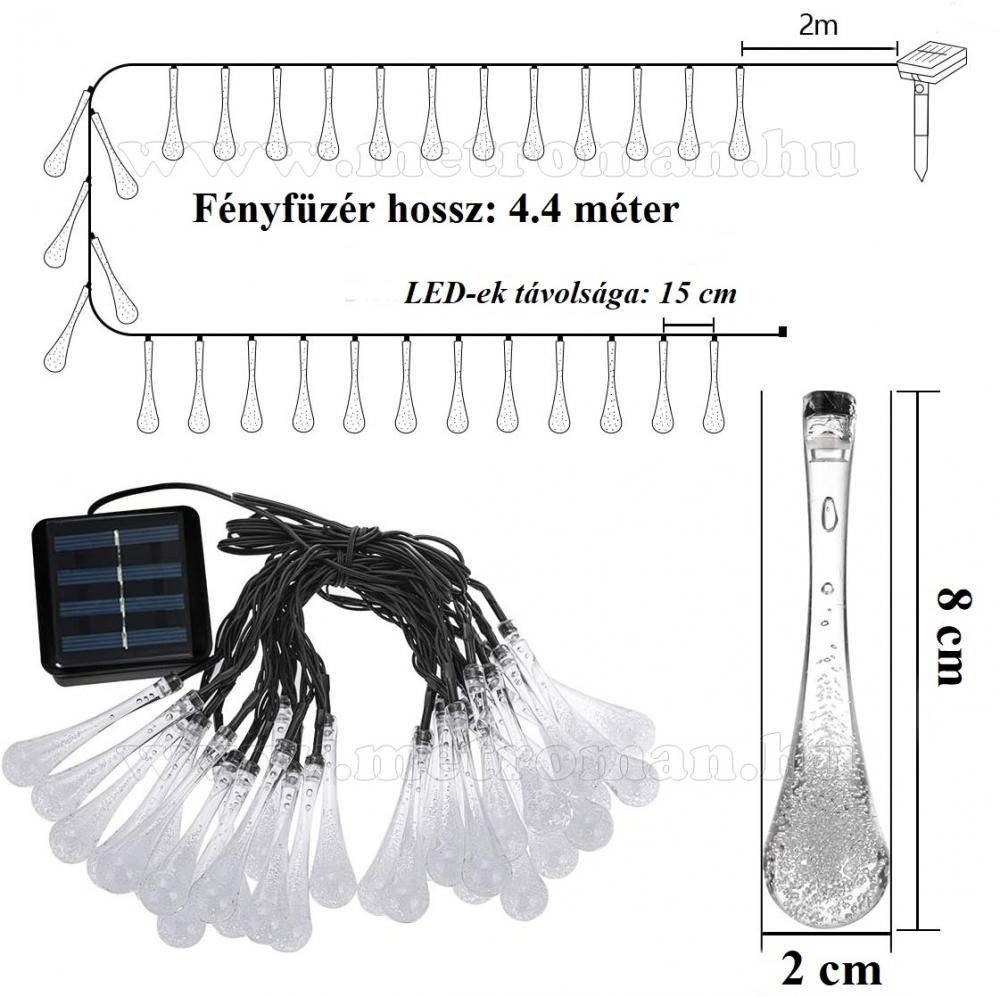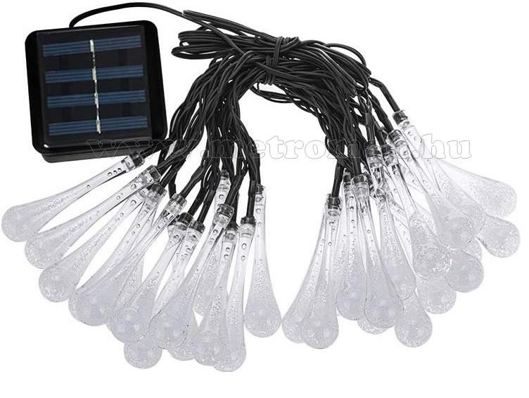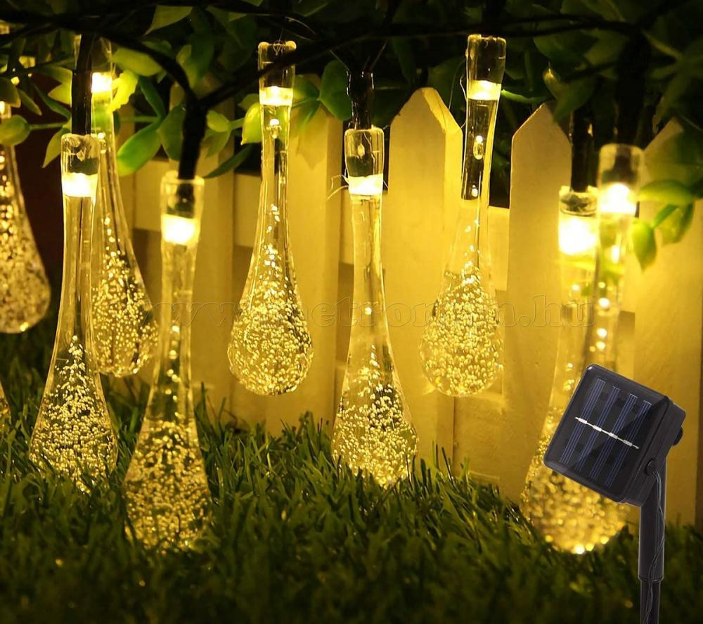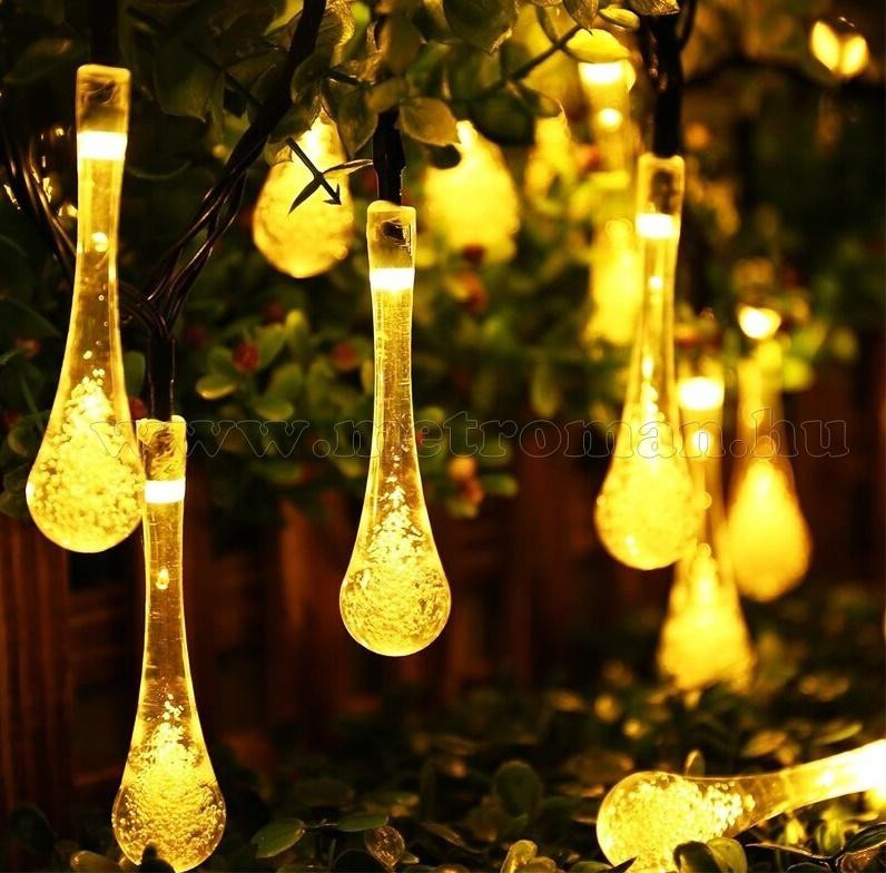 Kültéri napelemes LED fényfüzér, kerti fényfüzér és hangulat világítás, NLED30EMF Melegfehér Esőcsepp