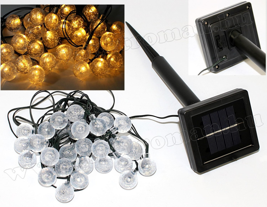 Napelemes Karácsonyi LED égősor, fényfüzér, mely nem csak ünnepekkor, hanem egész évben kellemes dekoráció lehet kertünkben is.