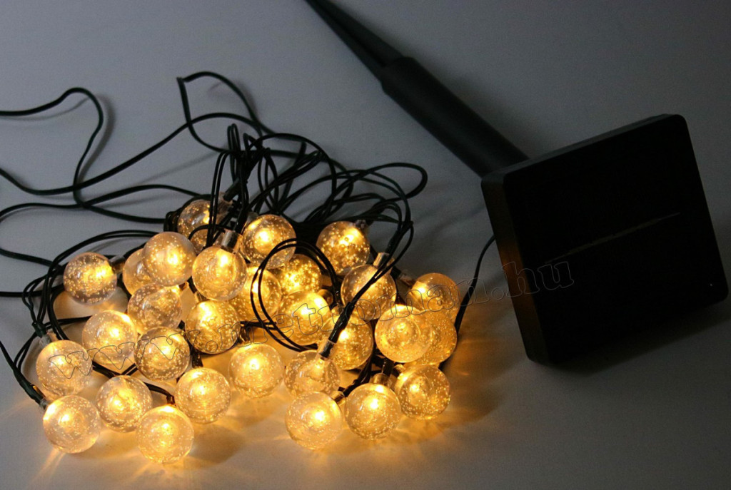 Kültéri napelemes LED fényfüzér, kerti fényfüzér és hangulat világítás NLED30GMF Meleg Fehér Gömb