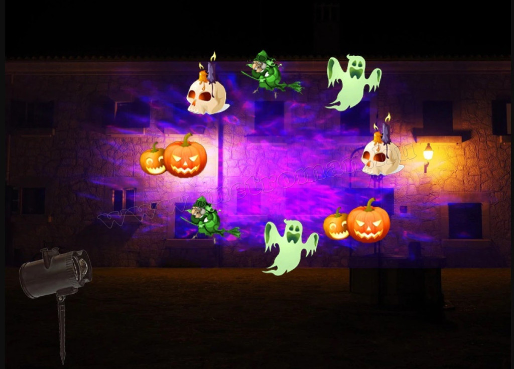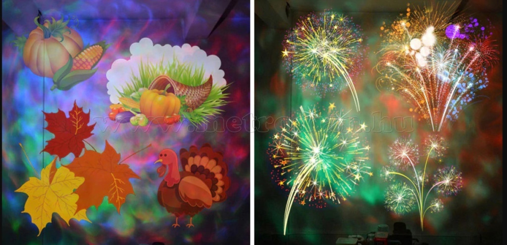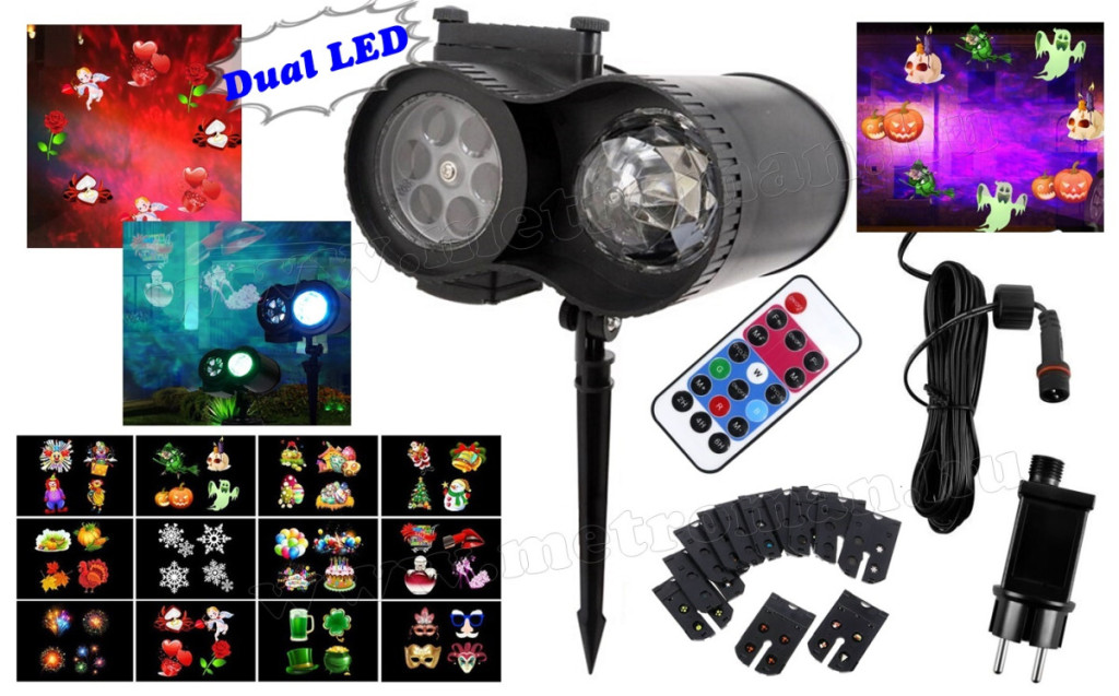 MM9565 Dual LEDKültéri színes LED fény projektor kerti hangulat világítás 12 vetítőlappal Videó