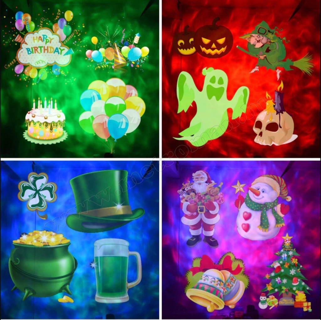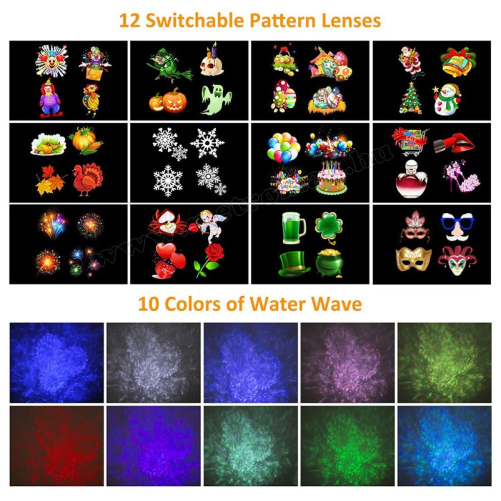 Kültéren is használható rendkívül látványos 12 különböző cserélhető figurás party fényeffekt LED háttérfény projektorral