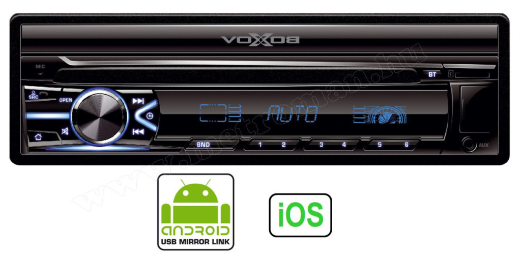 (iOS, Android 5.0 és újabb Mirror Link képes telefonokhoz) A készülék különleges szolgáltatása, hogy az USB vezetékkel csatlakoztatott iOS és Android  5.0 operációs rendszerrel rendelkező mobiltelefonok képe másodlagos kijelzőként megjeleníthető a nagyméretű érintőképernyőn. A mobiltelefonon lévő összes alkalmazás - a telefon pozíciójától függően - álló vagy fekvő formátumban megjelenik és azok a telefon érintése nélkül, a rádió érintő képernyőjéről vezérelhetők. Így például a telefon memóriájában található vagy on-line internetes forrásokból lejátszott zenék, filmek és egyéb tartalmak valamint internet rádiók, térképek, navigációs alkalmazások, POI adatbázisok