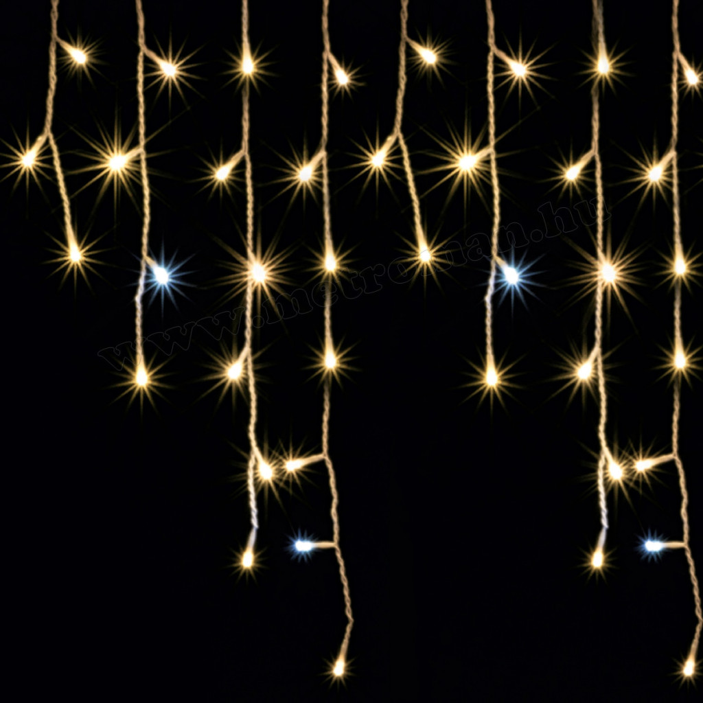 • 600 db meleg fehér állófényű LED, de minden második füzérben egy hideg fehér LED villog, 10 méter