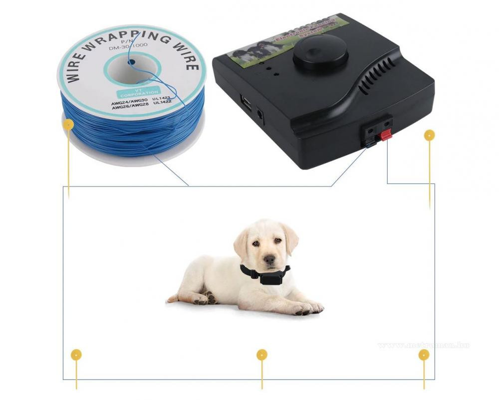 Elektromos, láthatatlan kerítés és vízálló nyakörv kutyák számára. A csomagban található vezetéket a földbe leásva könnyedén behatárolhatjuk a kutya mozgási területét anélkül, hogy költséges és bonyolult kerítés építésbe kezdenénk.