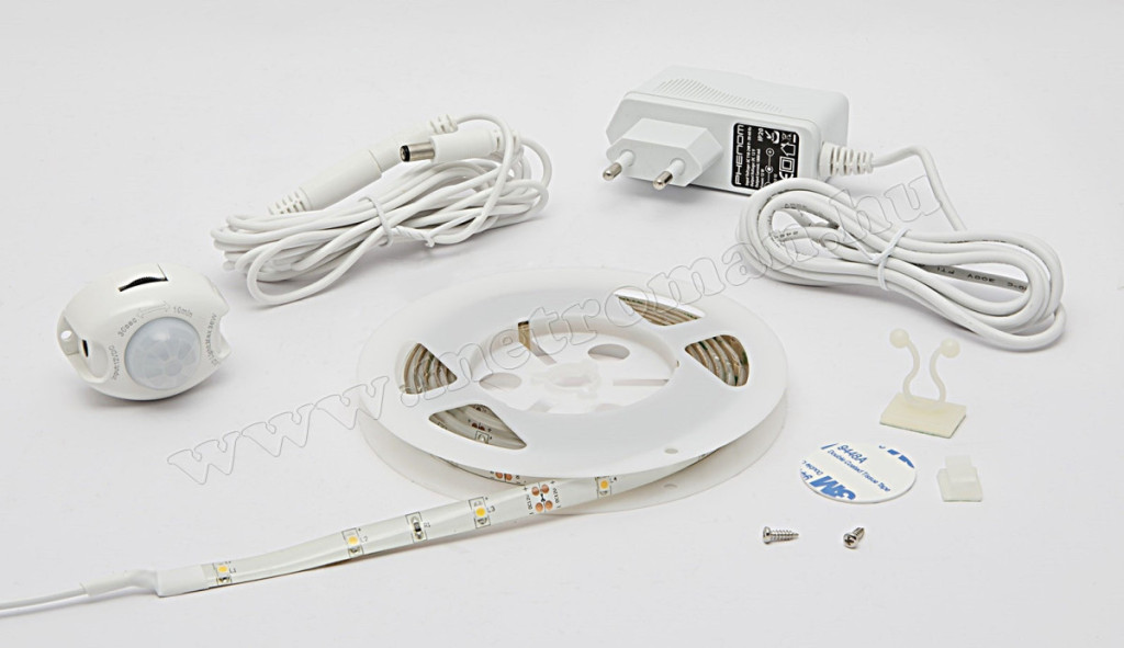 A LED szalag mozgás hatására sötétben felkapcsol, a mozgásérzékelő szenzornak köszönhetően. A szenzor 30 másodperc és 10 perc közötti időintervallum között mozgatható, kiválasztva a felkapcsolódás után elérni kívánt világítás időtartamát. LED-ek száma: 60.