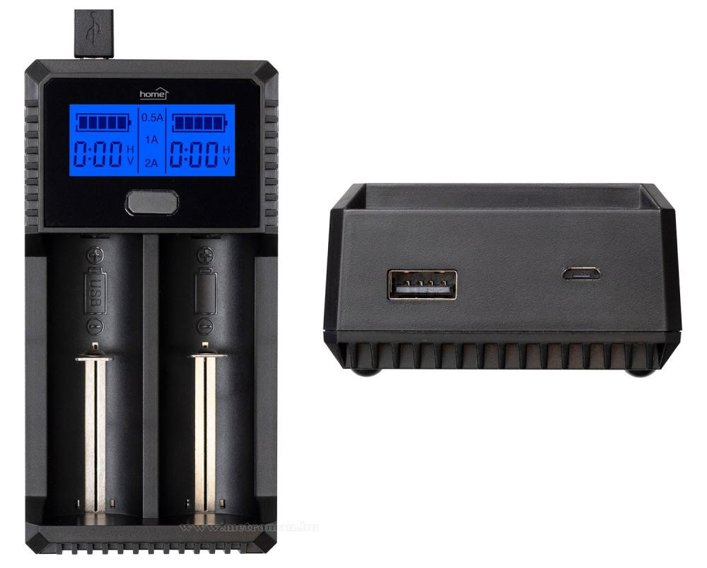 Akkumulátortöltő Li-ion és Ni-Mh akkumulátorok töltéséhez, mely automatikusan felismeri a csatlakoztatott akkuk típusát és ennek megfelelően kiválasztja a megfelelő feszültséget, töltőáramot.