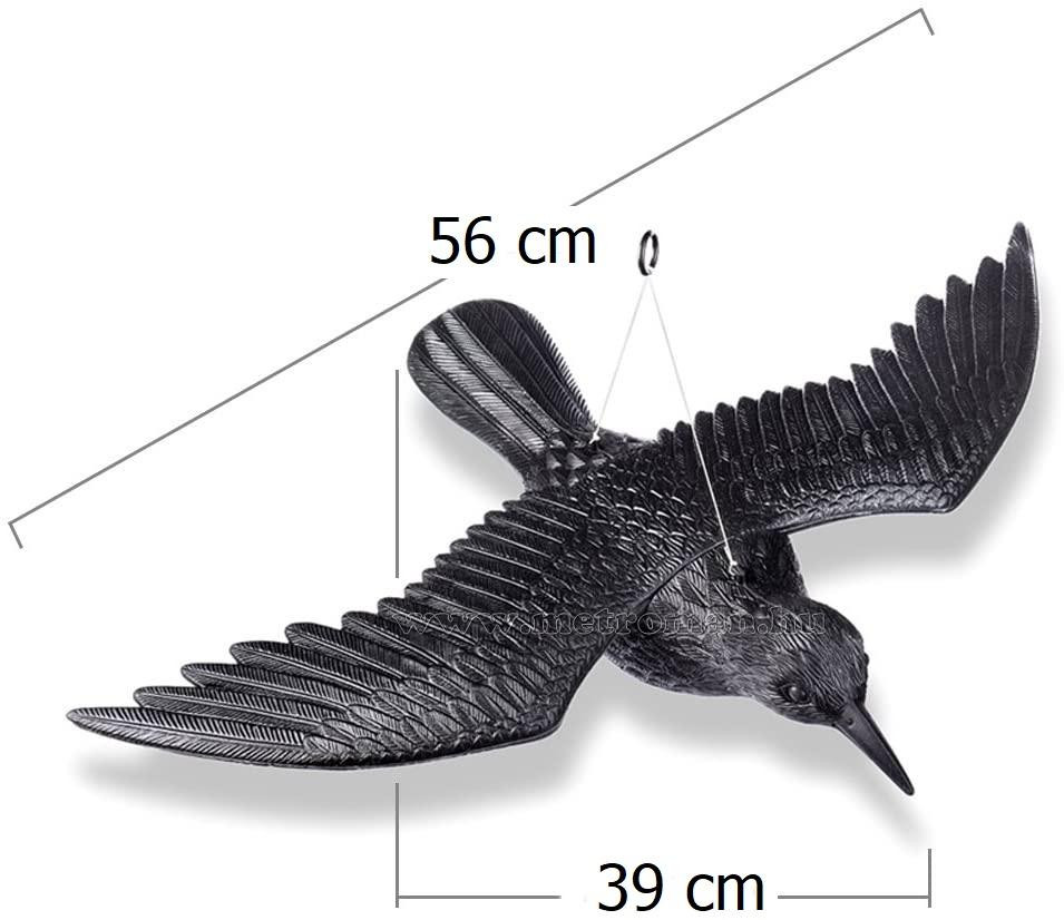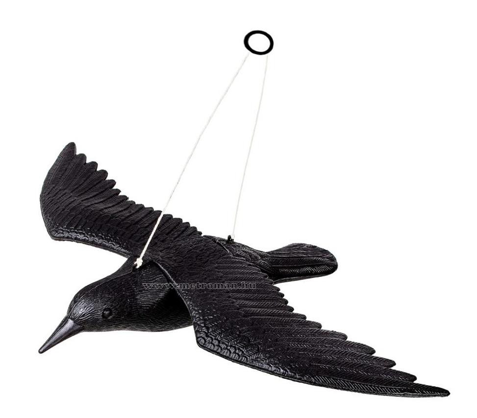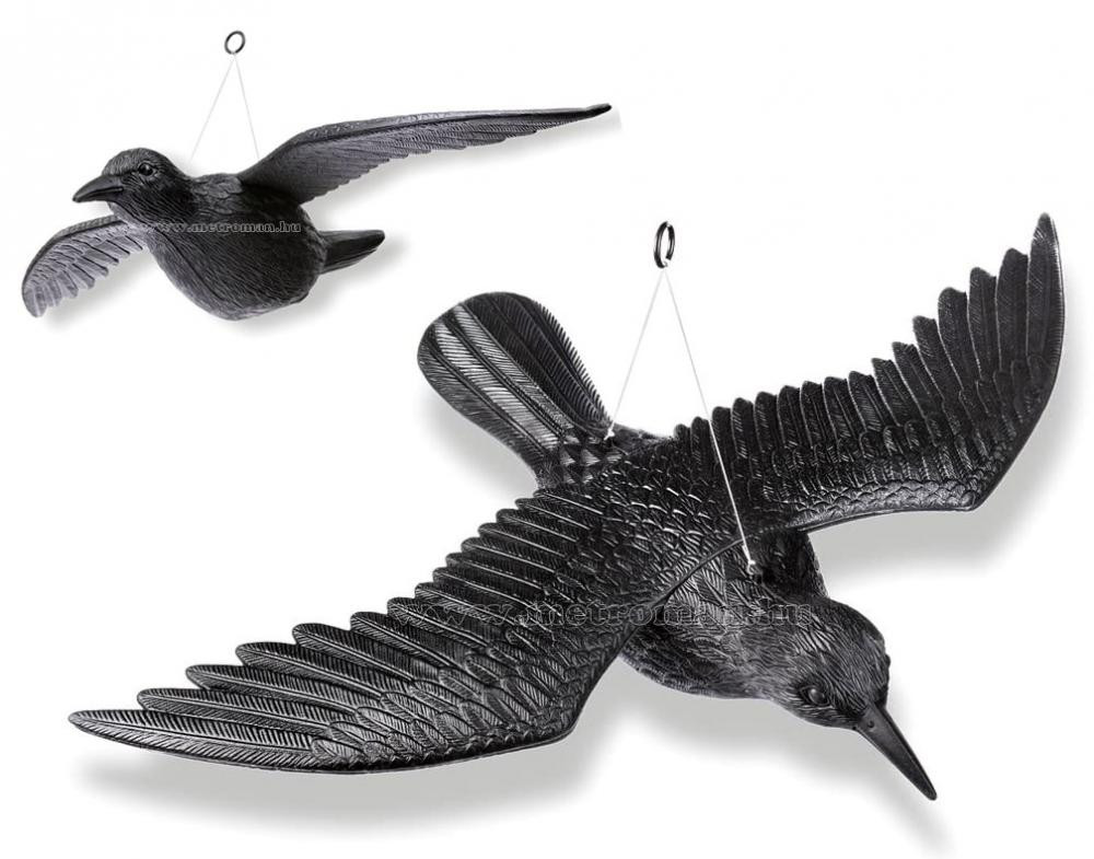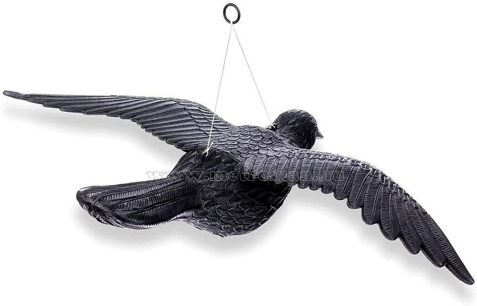 Repülést imitáló madárriasztó holló, melynek segítségével, hatékonyan elriaszthatja a kártevő madarakat a kertekből, gyümölcsösökből. Felakasztható kivitel, mely a repülő holló látszatát kelti. Könnyen áthelyezhető, ami ajánlott is időnként, hogy a seregélyek, galambok és egyéb madarak ne szokják meg jelenlétét.