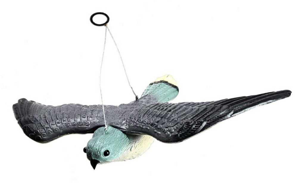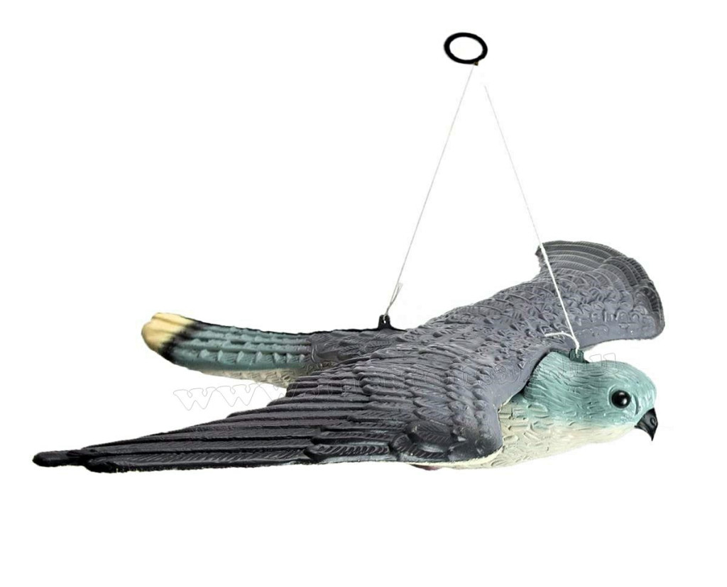 Élethűen kidolgozott madárriasztó műsólyom, melynek segítségével, hatékonyan elriaszthatja a kártevő madarakat a kertekből, gyümölcsösökből. Felakasztható kivitel, mely a repülő sólyom látszatát kelti. Könnyen áthelyezhető, ami ajánlott is időnként, hogy a seregélyek, galambok, egerek ne szokják meg jelenlétét. Tartós műanyagból készült ellenáll az időjárásnak, UV sugárzásnak.